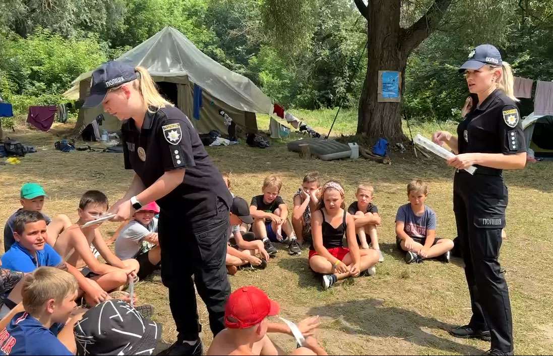 Начальниця сектору ювенальної превенції Лубенського райвідділу поліції Катерина Сорокотяга спільно з ювенальною інспекторкою Валентиною Бурдим відвідали вихованців спортивної організації «Євроклуб Лубни», які розгорнули наметовий табір неподалік села Мгар, Лубенської територіальної громади.