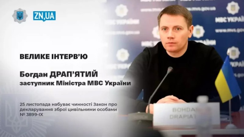 Богдан Драп’ятий стверджує, що процедура декларування зброї є максимально простою і зрозумілою. МВС докладає усіх зусиль, щоби з 25 листопада громадяни могли без будь-яких труднощів подати заявку у відповідному територіальному органі Національної поліції: