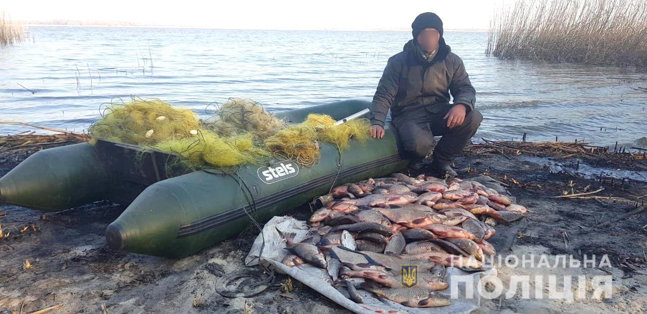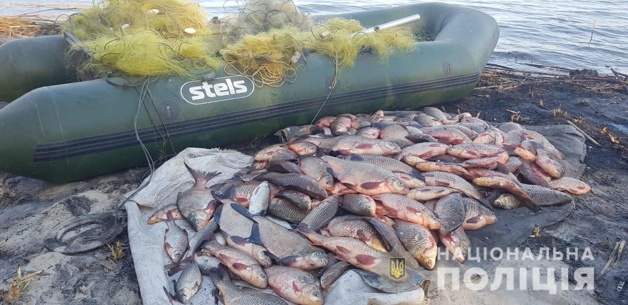 Чоловік з використанням гумового човна та забороненого знаряддя лову (ліскових сіток в кількості 5 штук по 50 метрів) здійснив вилов риби різних видів вагою близько 68 кілограмів. Своїми діями рибалка завдав збитку на загальну суму близько дев’яти тисяч гривень.
