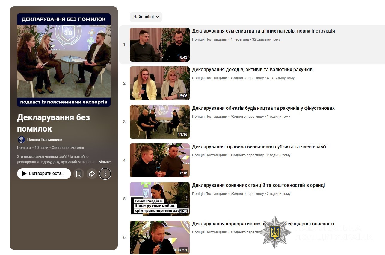 Декларування без помилок: поліція Полтавщини радить держслужбовцям подкаст із поясненнями експертів