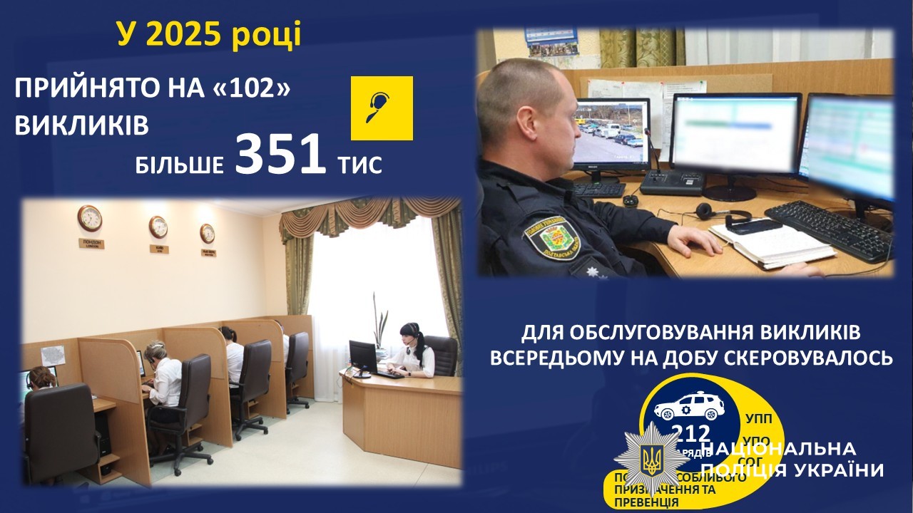 Щодоби на лінію «102» надходило в середньому понад 700 дзвінків. Загалом протягом року оператори опрацювали понад 351 тисячу звернень громадян.