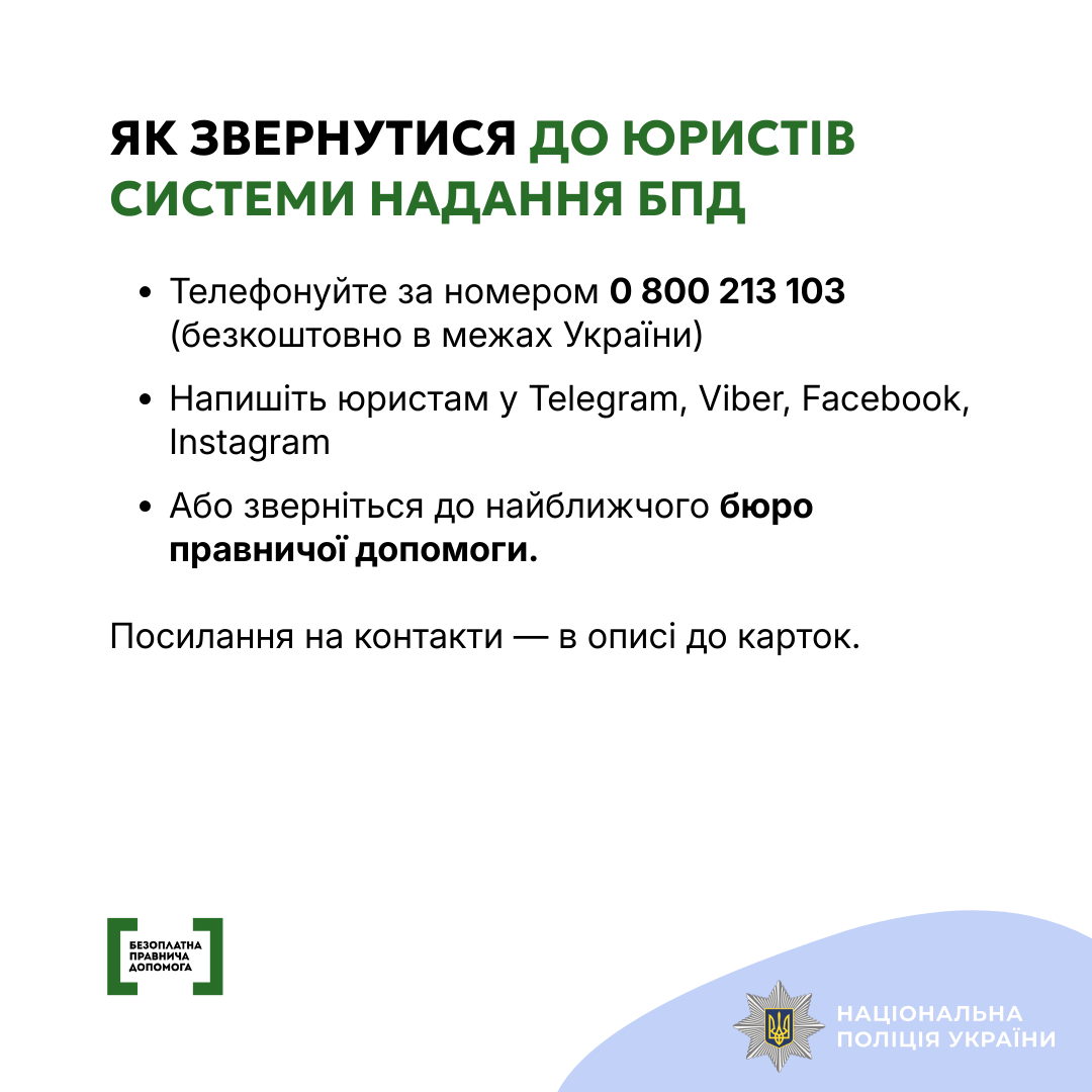 Всі контакти за посиланням: https://legalaid.gov.ua/kliyentam/yak-otrymaty-bpd/