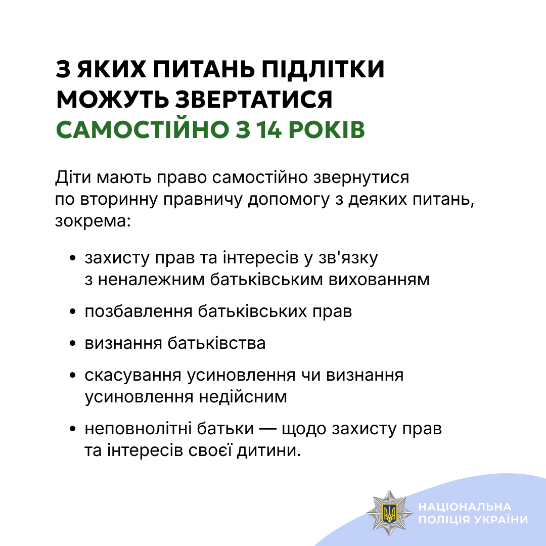 Діти мають право самостійно звертатися по правничу допомогу: з якого віку і з яких питань