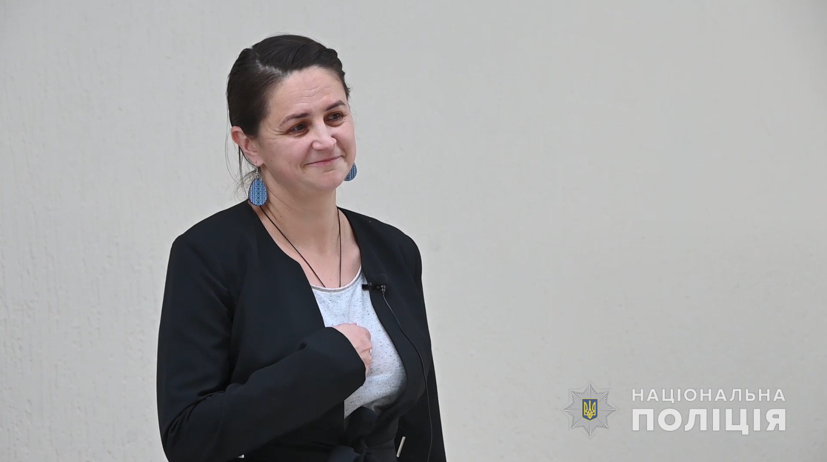 Під час інструктажу, який проводив заступник начальника поліції Полтавщини Максим Ахрамєєв, перед відрядженням правоохоронців до звільнених територій, Ірина Москаленко вручила кожному поліцейському солодкий подарунок у вигляді тризуба з калиною.