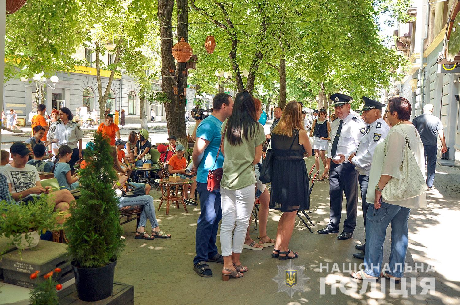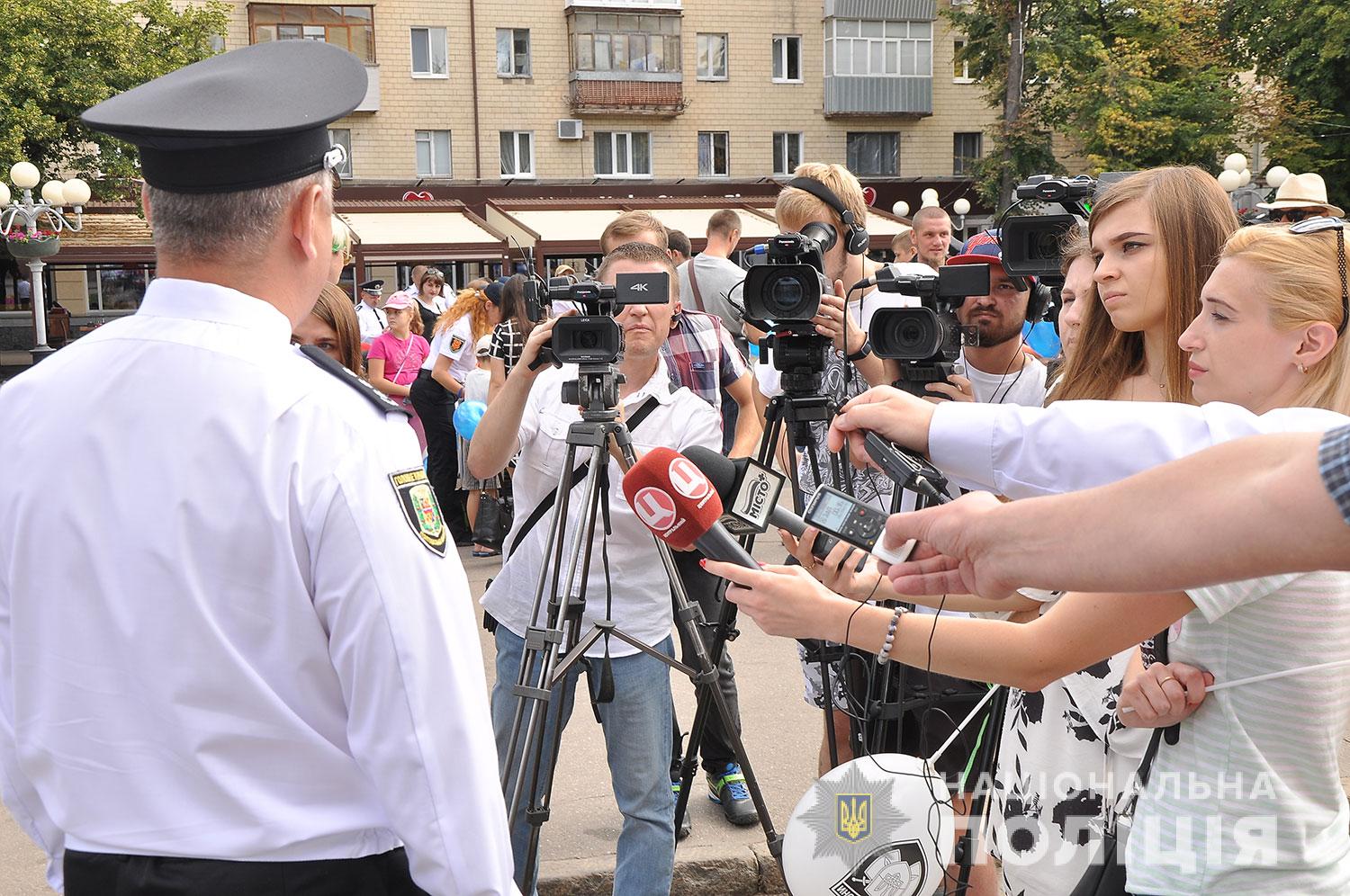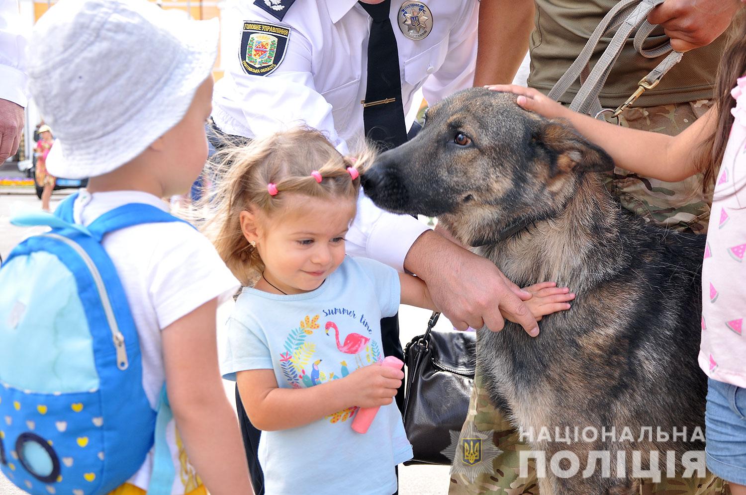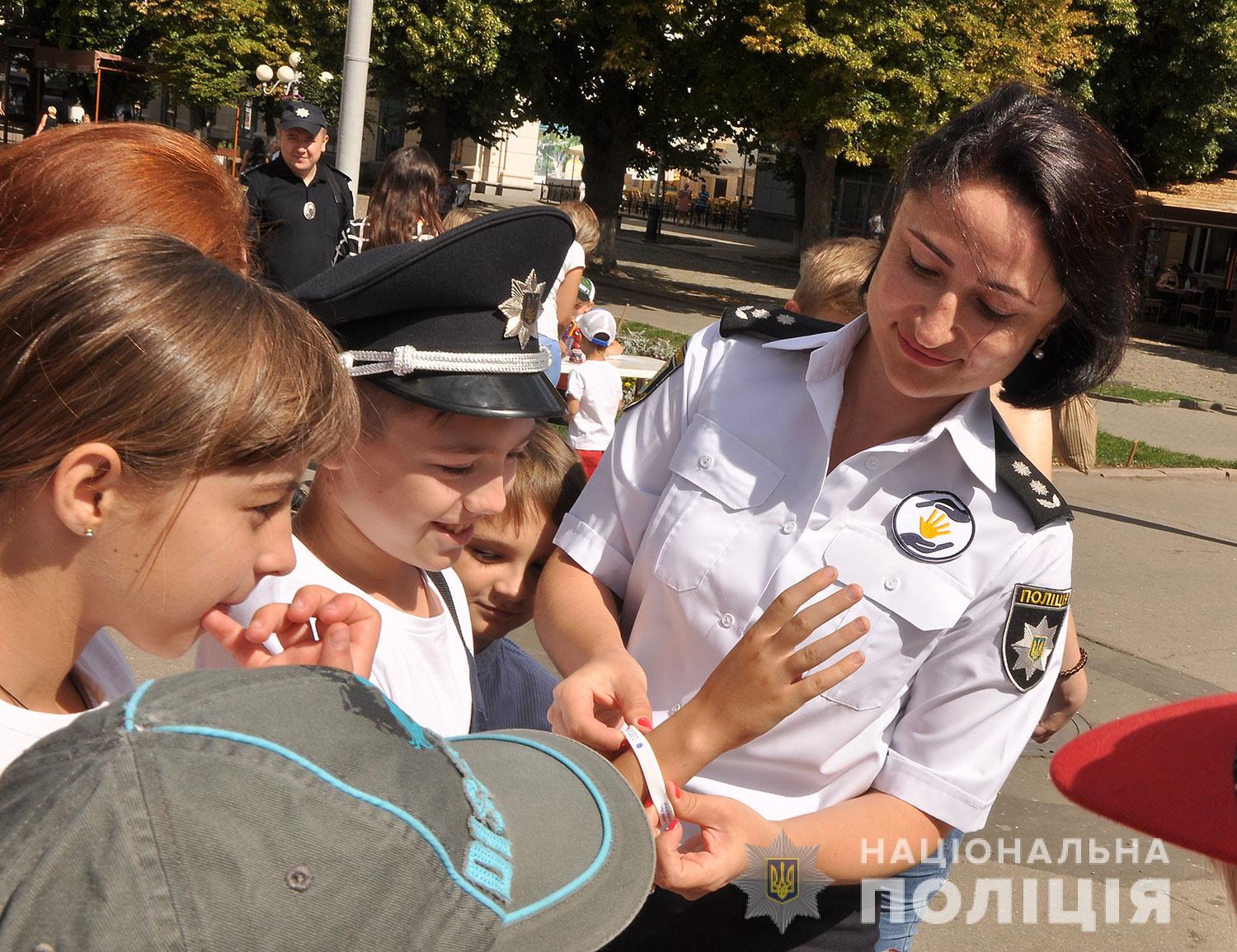 Сьогодні на площі, біля театру ім. М. В. Гоголя, поліцейські розповідали про обраний фах, відверто відповідали на запитання дорослих і дітей, ділилися цікавими історіями з власного досвіду, навчали дорожній «грамоті», фотографувалися на згадку та малювали на асфальті.