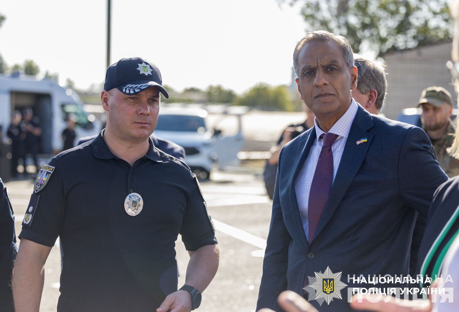 Під час зустрічі з державним секретарем США з управління та ресурсів Річардом Верма та Посолом США в Україні Бріджит Брінк, окрім Голови Нацполіції України Івана Вигівського, також були присутні керівники та представники структурних підрозділів — начальник Департаменту патрульної поліції Євгеній Жуков, начальник Управління вибухотехнічної служби Володимир Хоменко, криміналісти, поліцейські спецпідрозділу тактичної підтримки тактико-оперативного реагування патрульної поліції (TacTeam) та спецпідрозділу КОРД.