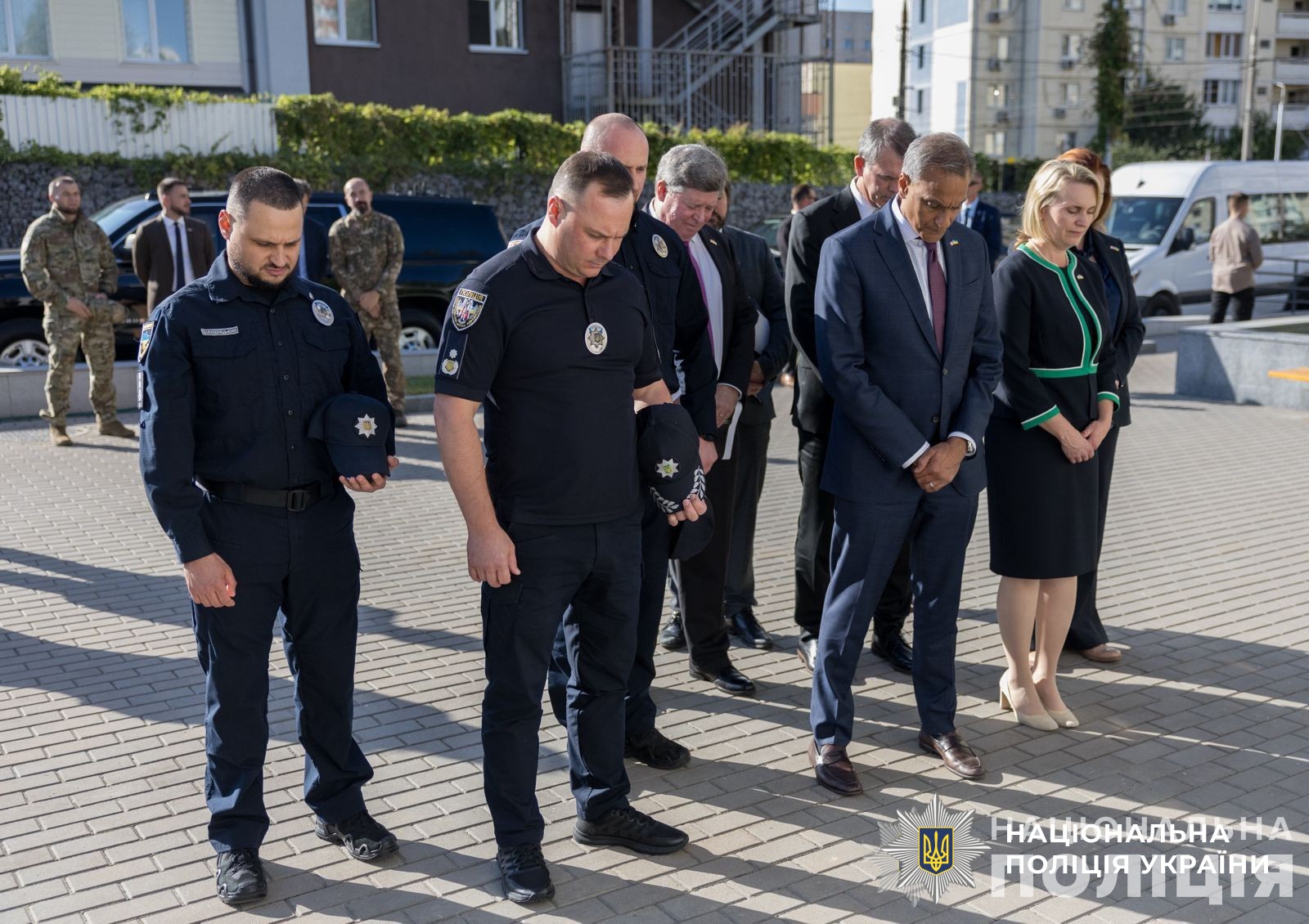 Біля Меморіалу памʼяті загиблих поліцейських міжнародні партнери хвилиною мовчання вшанували полеглих поліцейських-захисників України.