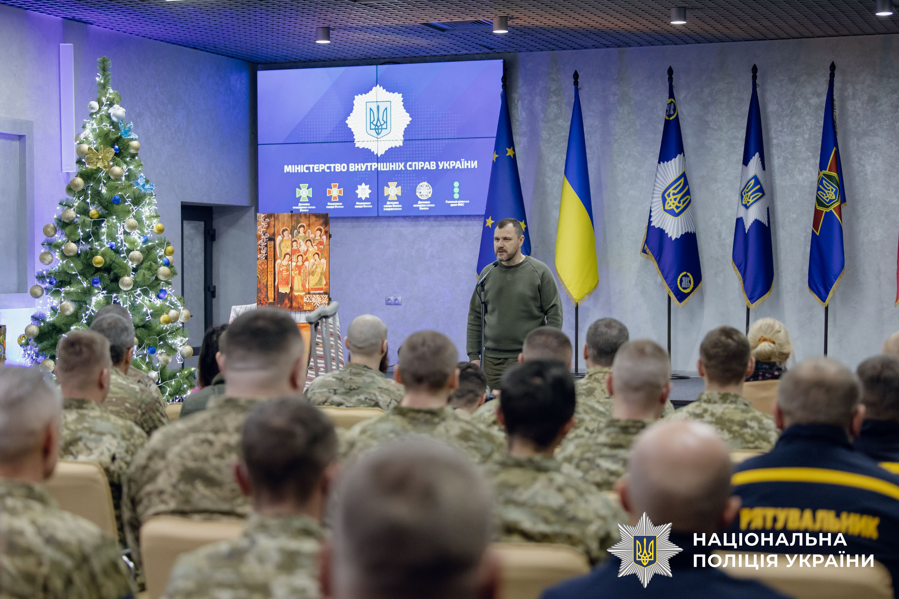 Міністр внутрішніх справ наголосив, що саме бійці Національної гвардії, Державної прикордонної служби та Національної поліції України спільно з іншими військовими виконують завдання у зоні бойових дій та проводять стабілізаційні заходи на деокупованих територіях. А працівники ДСНС одними з перших виїжджають на пожежі та руйнування, спричинені ракетними ударами рф.