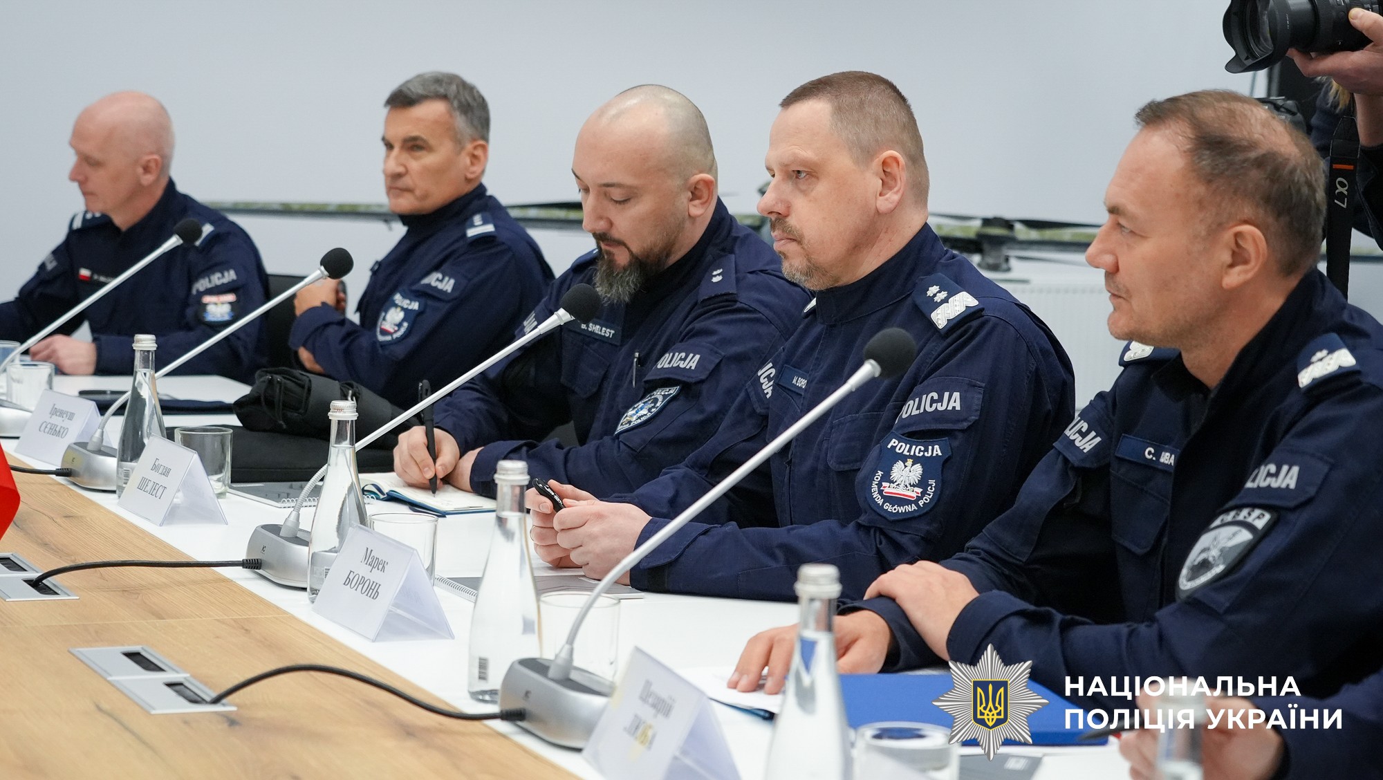 Українську сторону також представляли: заступник Голови Нацполіції – начальник кримінальної поліції Андрій Нєбитов, начальник Департаменту стратегічних розслідувань Андрій Рубель, начальник Департаменту превентивної діяльності Максим Ахрамєєв, тимчасово виконувач обов’язків начальника Департаменту міжнародного поліцейського співробітництва – начальник управління взаємодії з Інтерполом та Європолом Іван Гульпа, начальник Управління авіації та поліції на воді Сергій Кравченко.