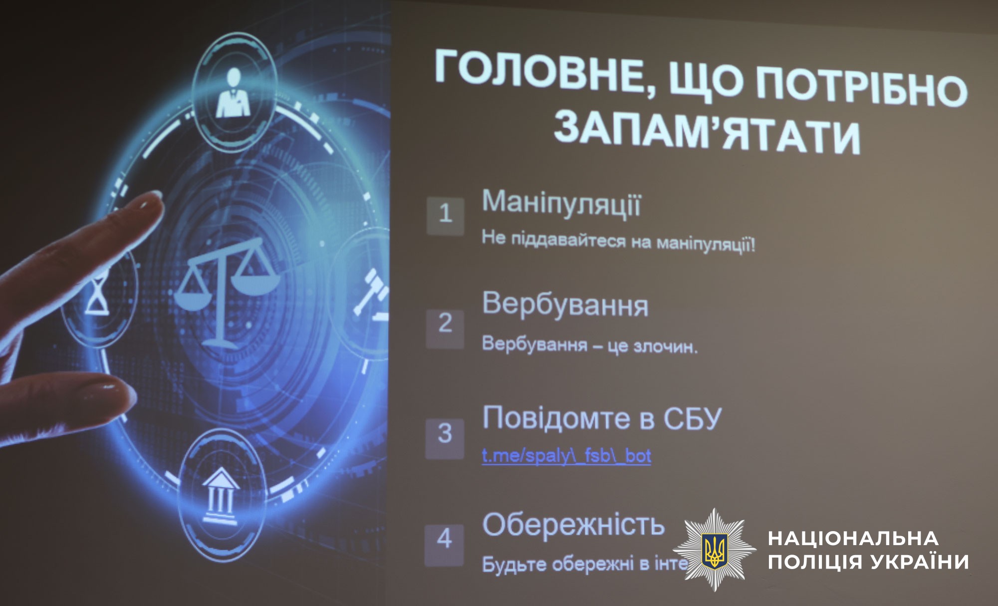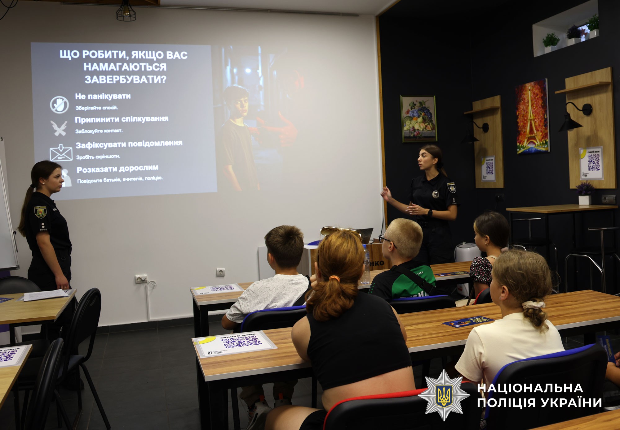 Окремо поліцейські поговорили з дітьми про небезпечну розвагу - "зачепінг", під час якої підлітки їздять на зовнішній стороні потягів, електричок або інших видів транспорту, чіпляючись за різні його частини. Поліцейські попередили, що ця гра є смертельно небезпечною, оскільки зачепери ризикують отримати серйозні травми, ураження електричним струмом або навіть загинути.