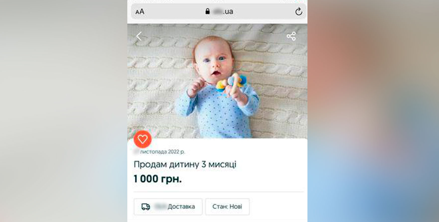 «Продам дитину (3 місяці) за 1000 гривень» – таке оголошення з’явилося днями на одній з популярних вебплатформ. Його прочитала Інтернет-користувачка та надіслала скриншот у Facebook Messenger «Поліція Полтавської області» з проханням перевірити інформацію «задля безпеки малюка».