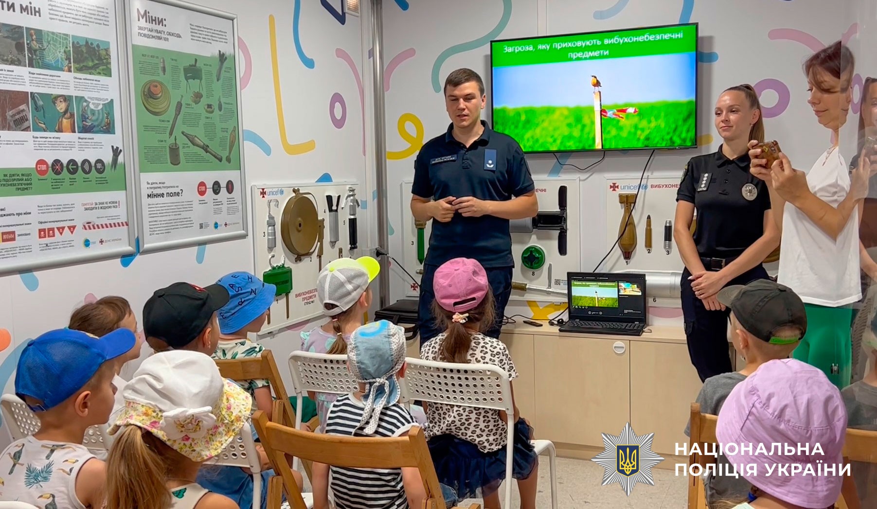 Очільниця сектору ювенальної превенції Миргородського райвідділу поліції Яніна Захода та рятувальник Богдан Струць провели інтерактиви для маленьких мешканців Миргородської громади.