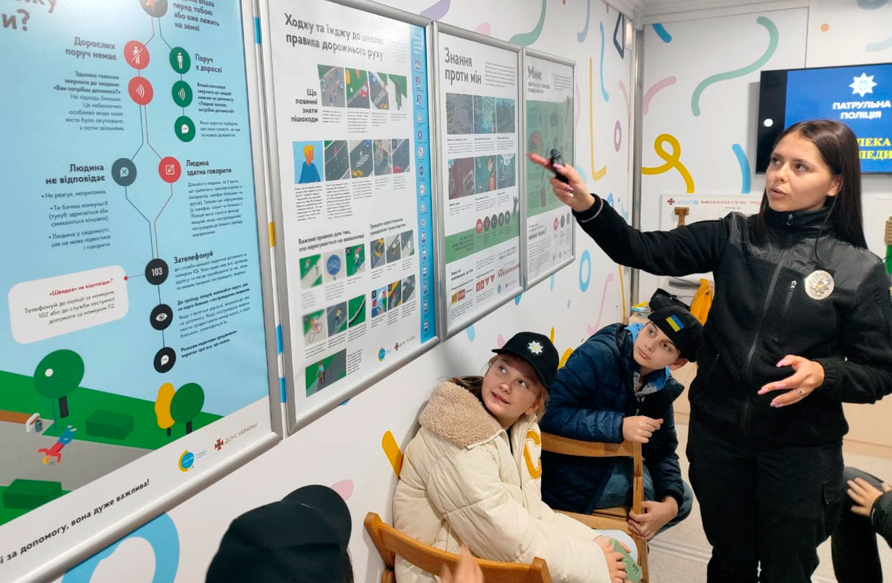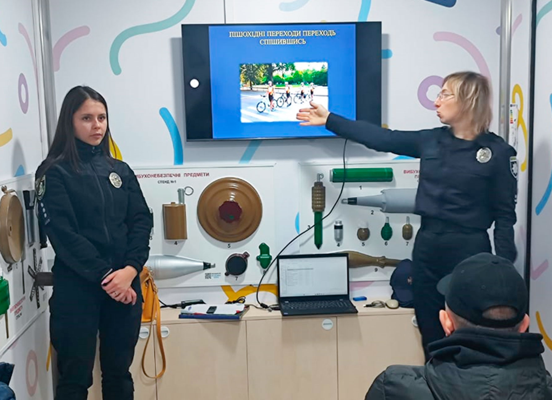 Нагадаємо, у мобільному класі безпеки є LED-екран для демонстрації навчальних роликів, стенди, презентації, ігрові навчальні матеріали (для проведення руханок та вікторин), розкладні стільці, столи, каримати, спецодяг рятувальників й однострій поліцейських, а також інші речі, необхідні для проведення інтерактивних занять як у фургоні, так і за його межами.