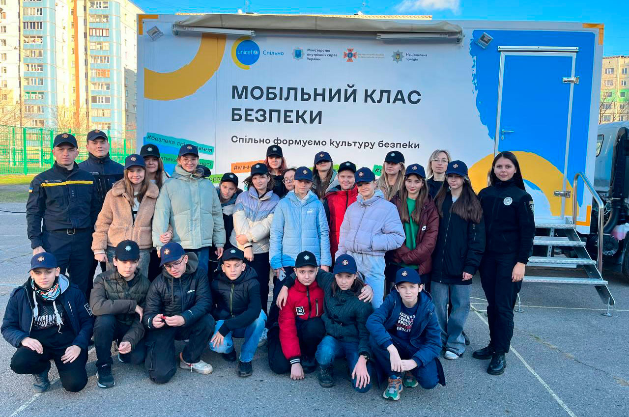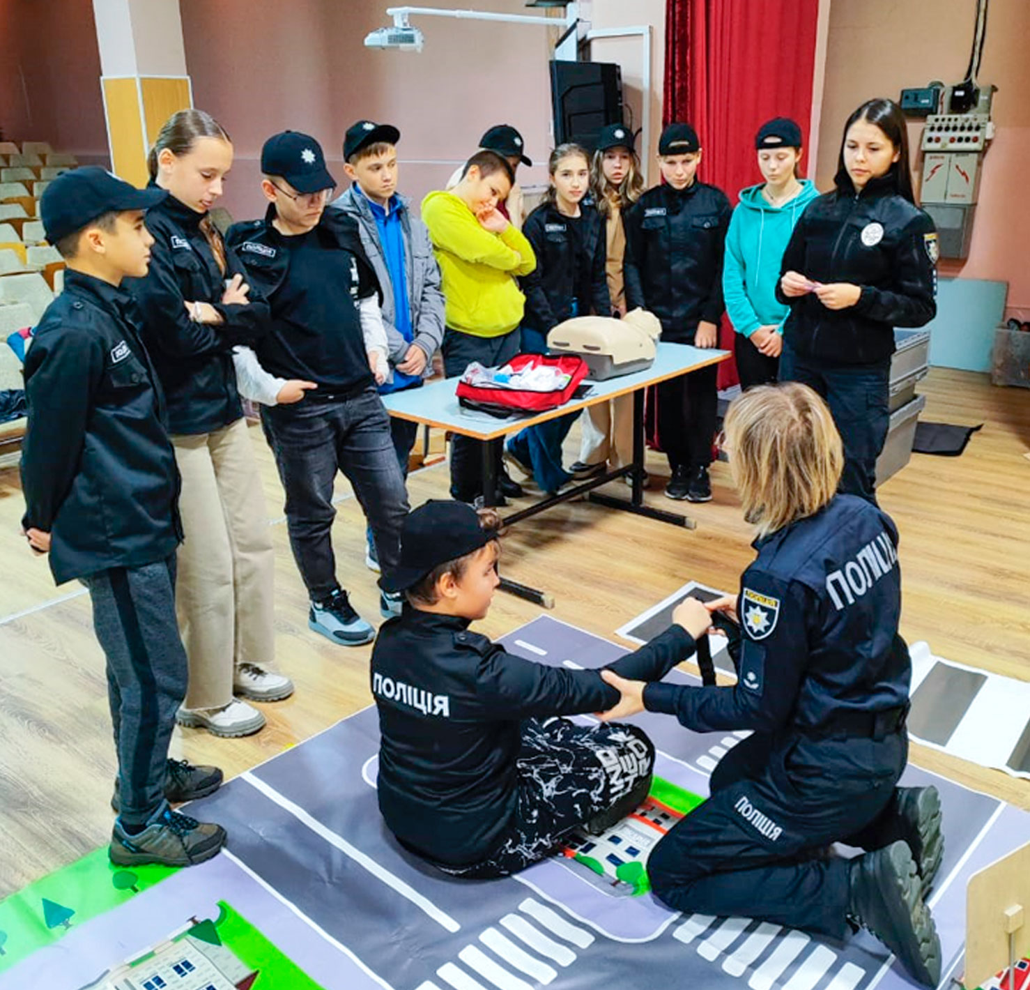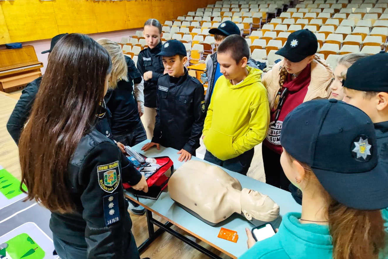 На базі спеціально оснащеного фургона ISUZU поліцейські та рятувальники навчали основних правил безпеки та домедичної допомоги учнів 7-х класів ліцею № 17 «Інтелект».