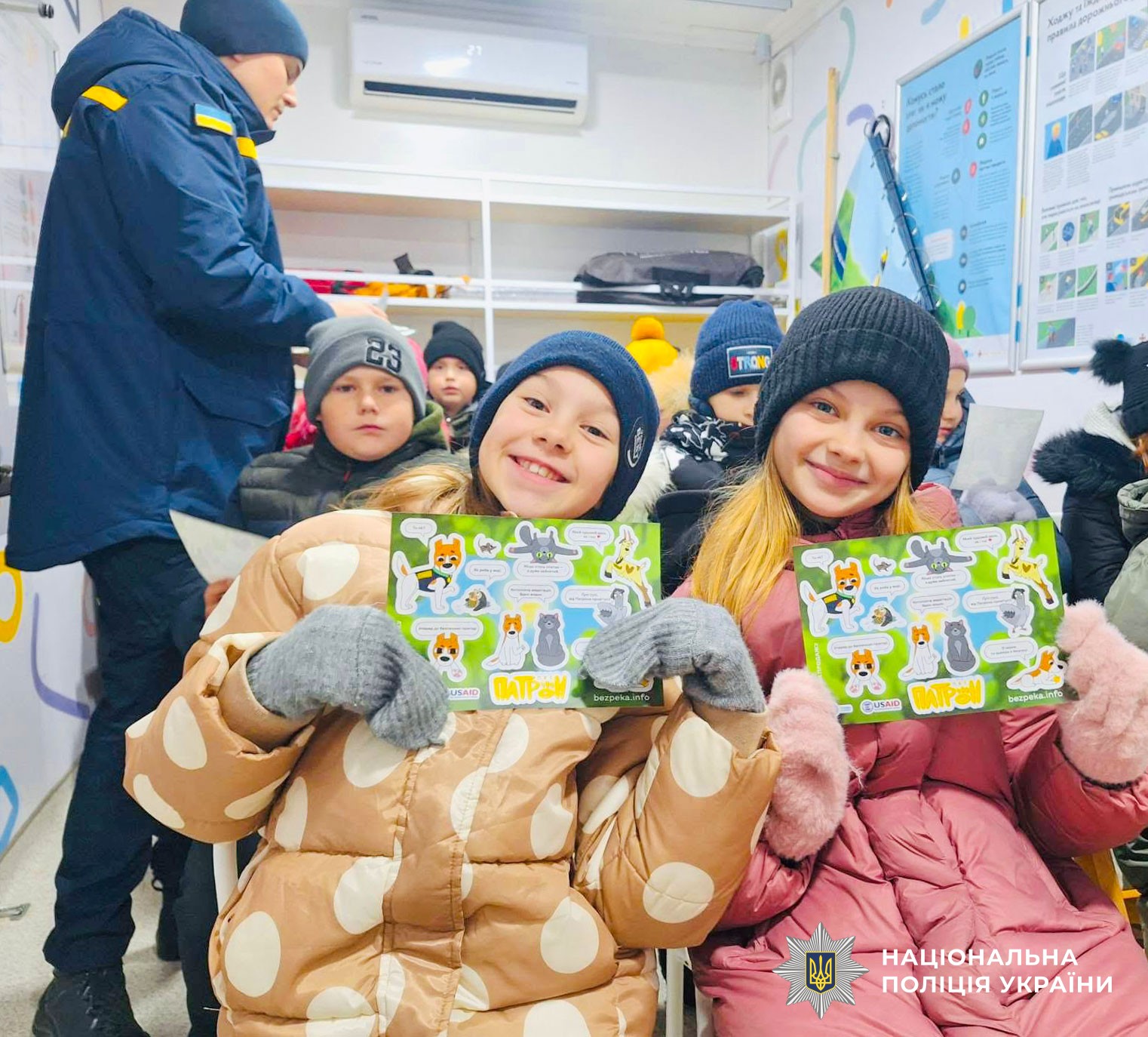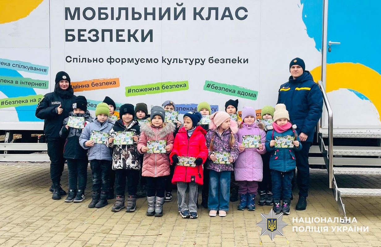 У пересувному інтерактивному класі поліцейські навчали школярів правил мінної, пожежної безпеки, а також правил поведінки вдома та на вулиці.