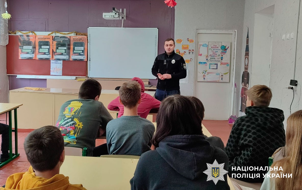 Поліцейський пояснив, що таке домашнє насильство, які бувають його форми та як діяти, якщо опинилися в небезпеці. Учні дізнались, що важливо не замовчувати випадки насильства та звертатись по допомогу до фахівців державних органів та неурядових організацій.