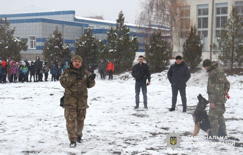 Поліцейські кінологи ознайомили учнів зі своєю професією та розповіли про особливості дресирування собак. Дітям продемонстрували вміння та навички службових собак у пошуку речових доказів, небезпечних чи вибухових предметів, зниклих людей, а також при затриманні злочинців.