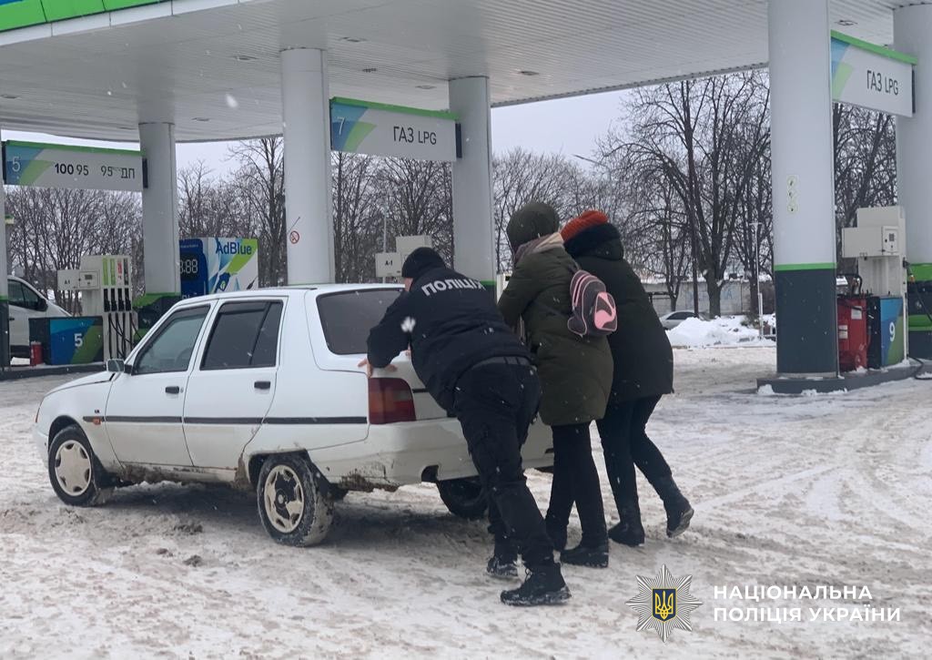 На Полтавщині поліцейські допомагають водіям на дорогах під час зимової негоди
