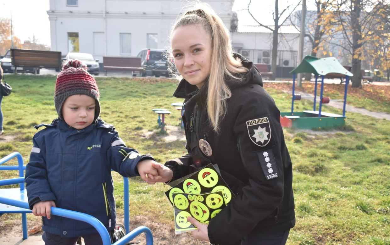 Для того, щоб стати частиною команди відповідальних учасників дорожнього руху, потрібно позначити себе у темряві за допомогою елементів, що добре відбивають світло фар транспортних засобів! Як повідомила очільниця відділу ювенальної превенції поліції Полтавщини Ірина Москаленко, для того, щоб залучити до безпекових заходів якомога більше людей (особливо дітей), в населених пунктах області працюють консультативні поліцейські групи. Правоохоронці роз’яснюють правила безпеки, дають поради та роздають діткам світловідбивні флікери.