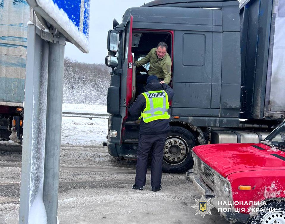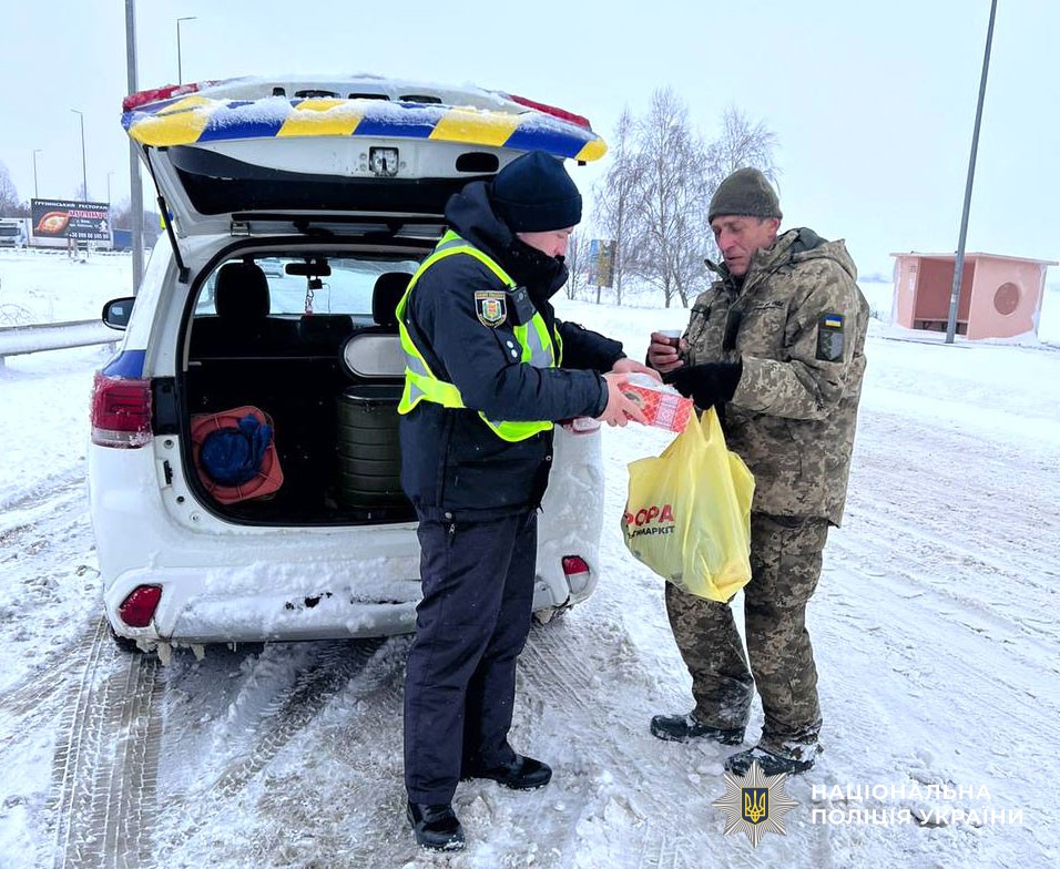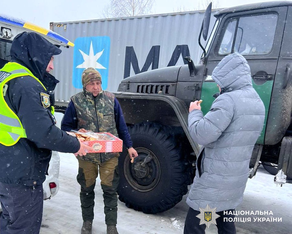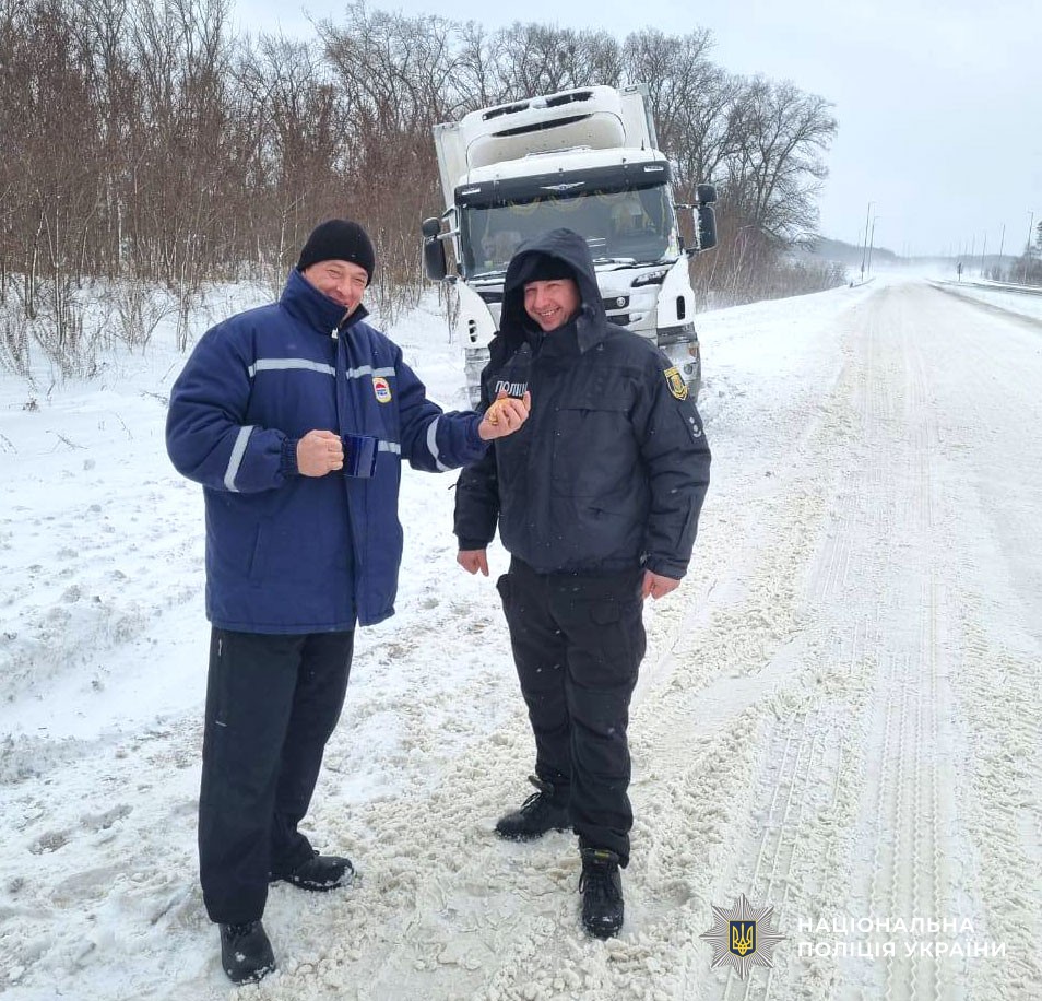 На Полтавщині поліцейські під час негоди допомагають водіям долати труднощі та пригощають чаєм