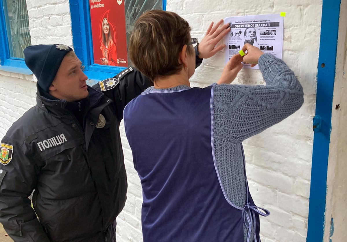 Також інформаційні листівки з порадами, як розпізнати шахрая та уникнути неприємної ситуації, правоохоронці розмістили у громадських місцях, біля адмінбудівель, на дошках оголошень житлових будинків та продуктових магазинів.