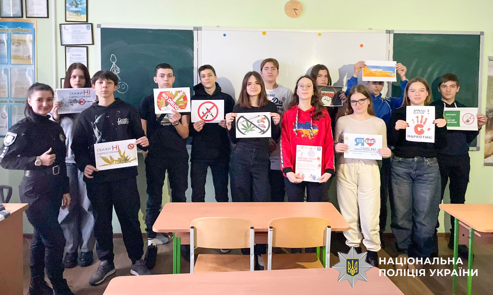 Інспекторка сектору ювенальної превенції Мирослава Солопун розповіла учням про негативні наслідки вживання наркотичних і психотропних речовин на організм людини та небезпеку, яка чатує на підлітків у разі залучення їх до розповсюдження заборонених речовин. Також наголосила на передбачених законодавством правових наслідках за вчинення злочинів у сфері незаконного обігу наркотиків.