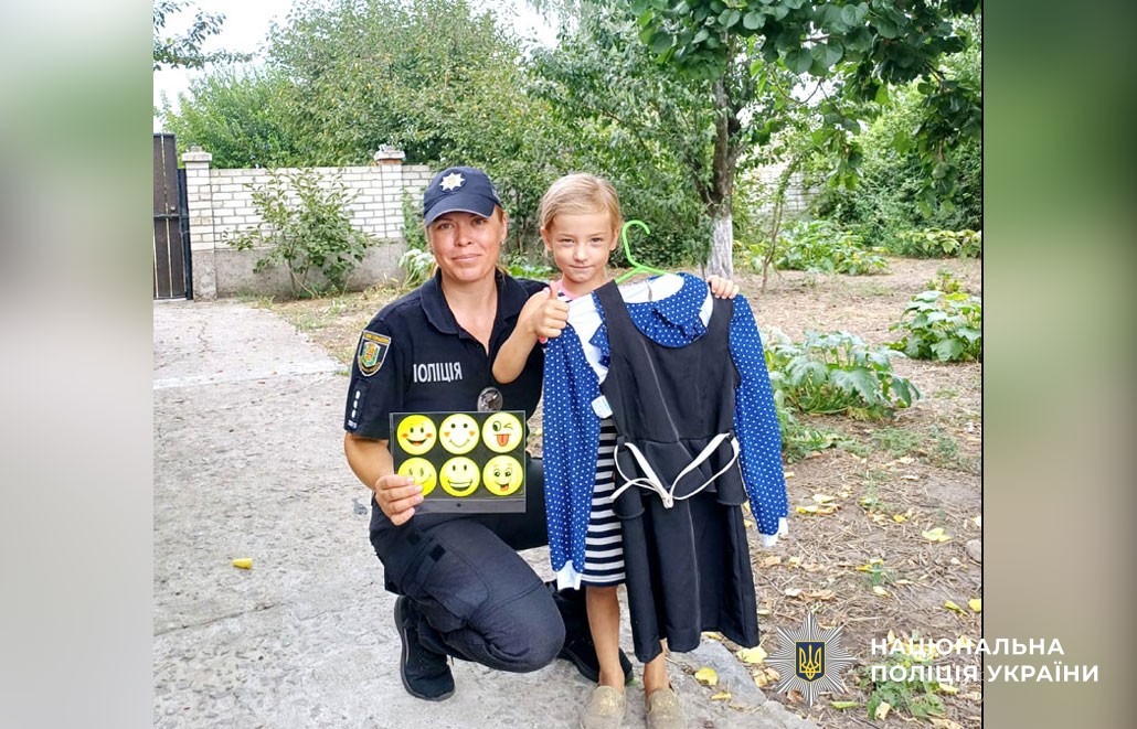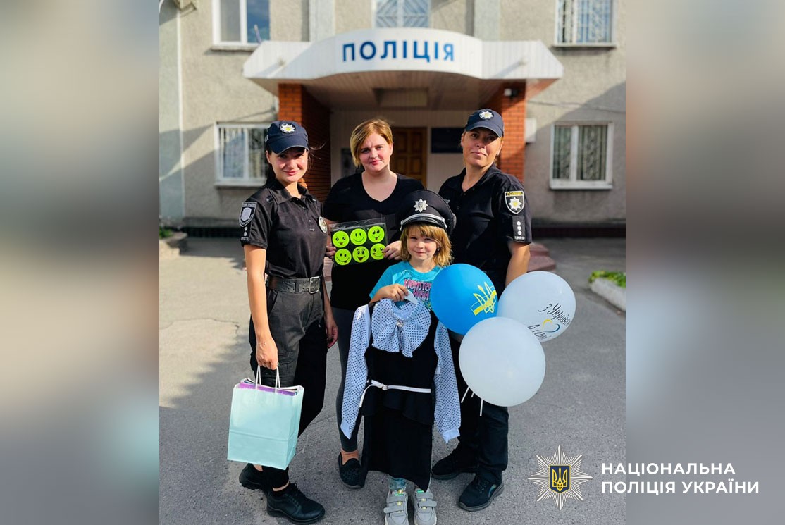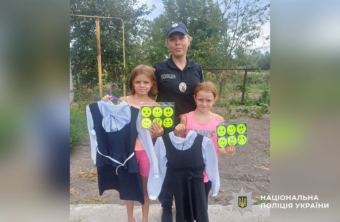 На Полтавщині поліцейські привітали дітей з прийдешнім Днем знань та презентували шкільну форму і канцелярію