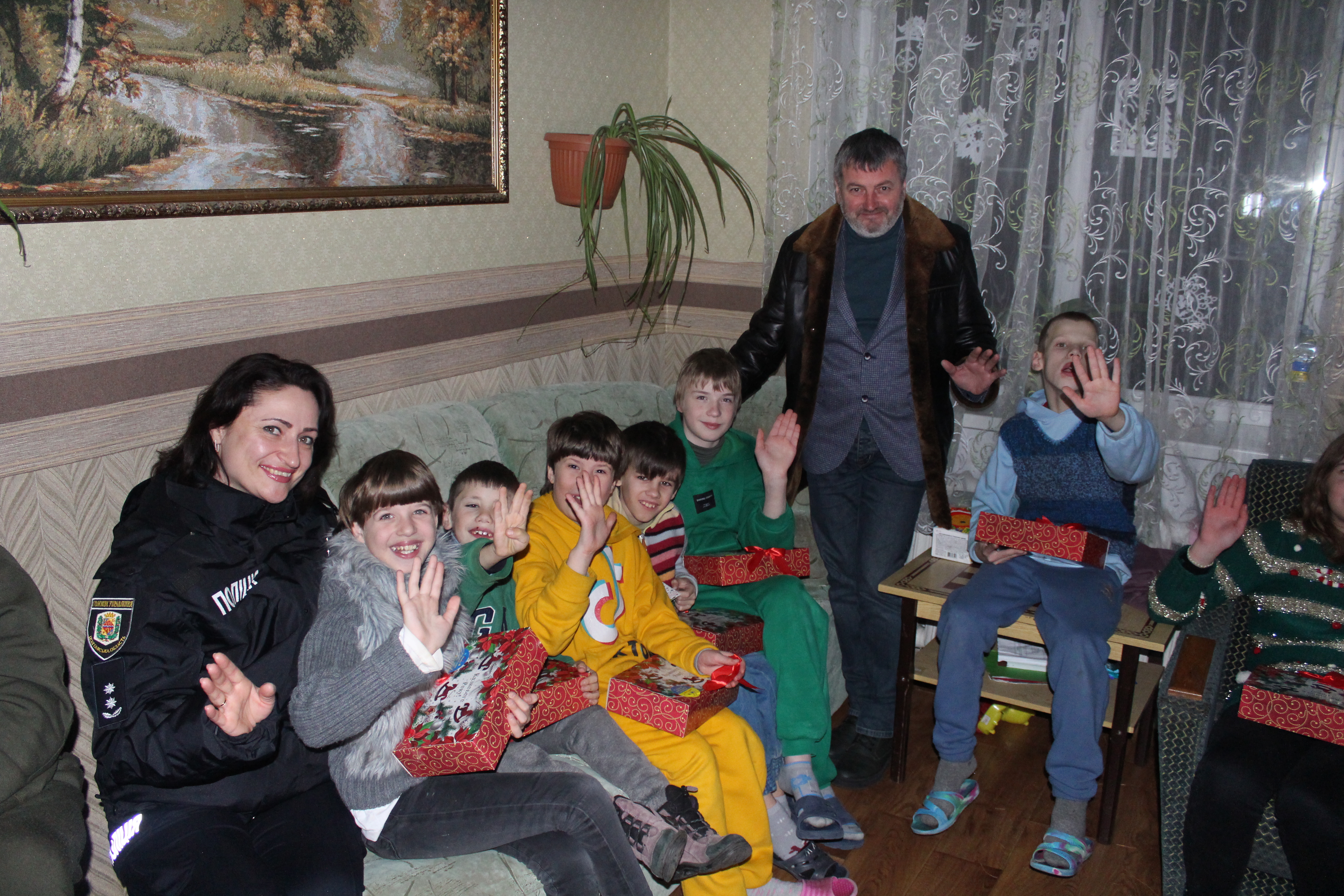 Одну із родин, де виховується десять дітей, у Щедрий вечір відвідали начальниця ювенальної превенції поліції Полтавщини Ірина Москаленко та голова профспілки поліцейських Полтавщини Сергій Порада.