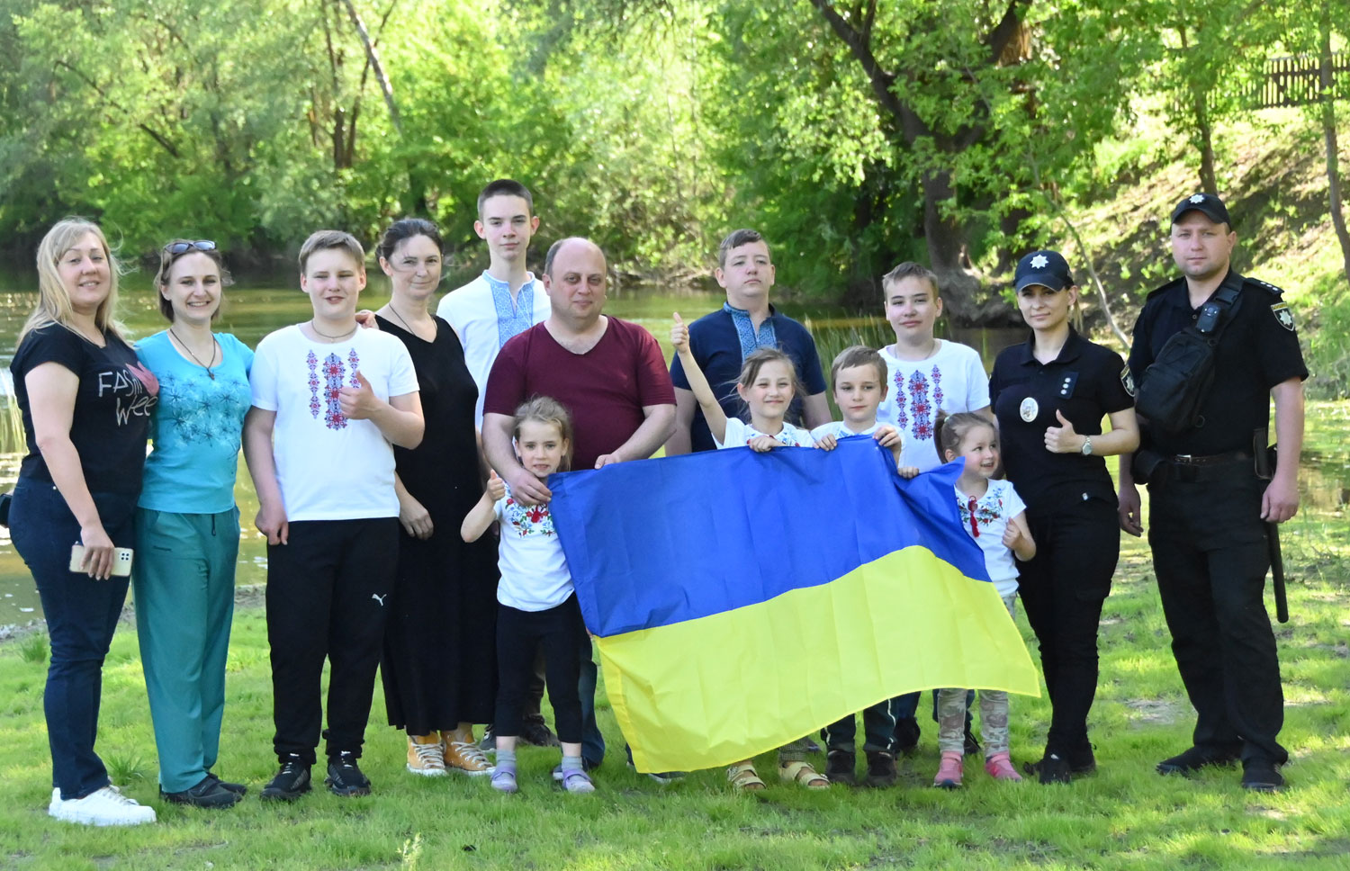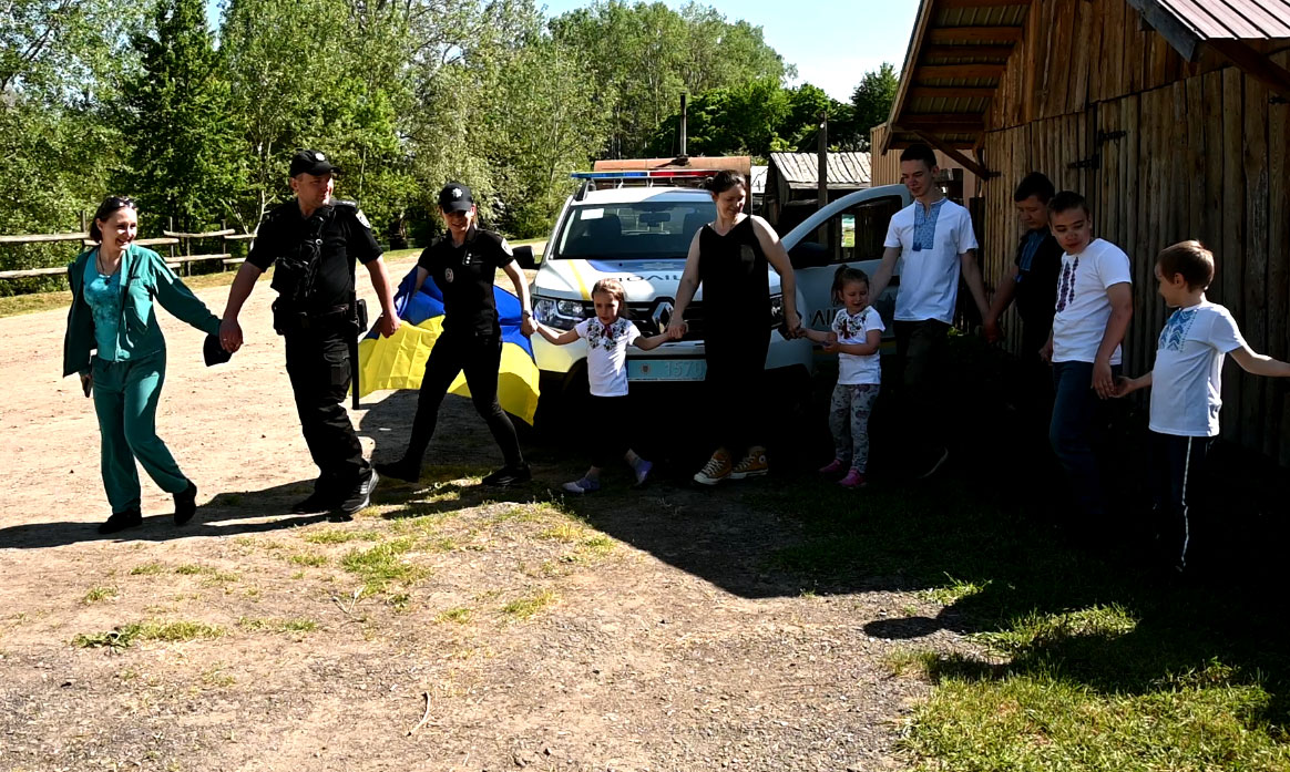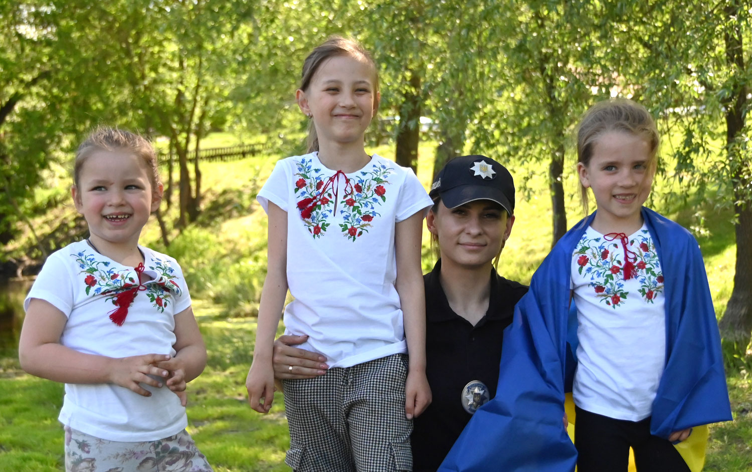 На Полтавщині поліцейські, спільно з дітками та їх батьками, які під час війни знайшли прихисток на Полтавщині, взяли участь у флешмобі, присвяченому вишиванці. Поліцейські розповіли учасникам про український національний одяг та кожній дитині подарували справжній оберіг – вишиванку.