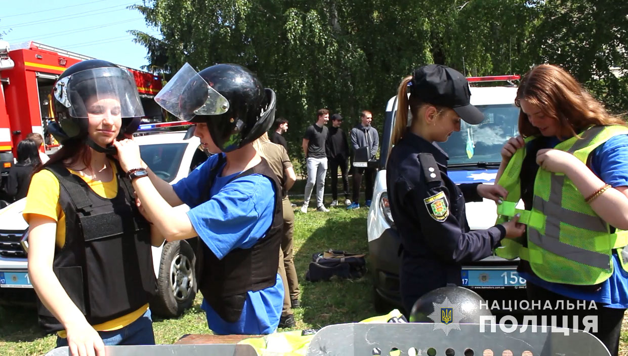Кожен з учасників зустрічі зміг відчути себе поліцейським або рятувальником, примірявши елементи спеціального спорядження.