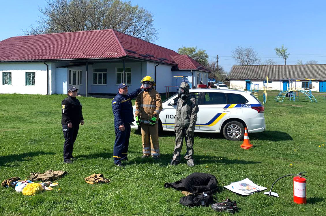 Під час практичного етапу зустрічі поліцейська спільно з рятувальниками продемонстрували учням навчального закладу спеціальне спорядження та захисний одяг, що використовуються працівниками служб, а також нагадали номери спецліній, за якими необхідно звертатися у разі надзвичайної ситуації.