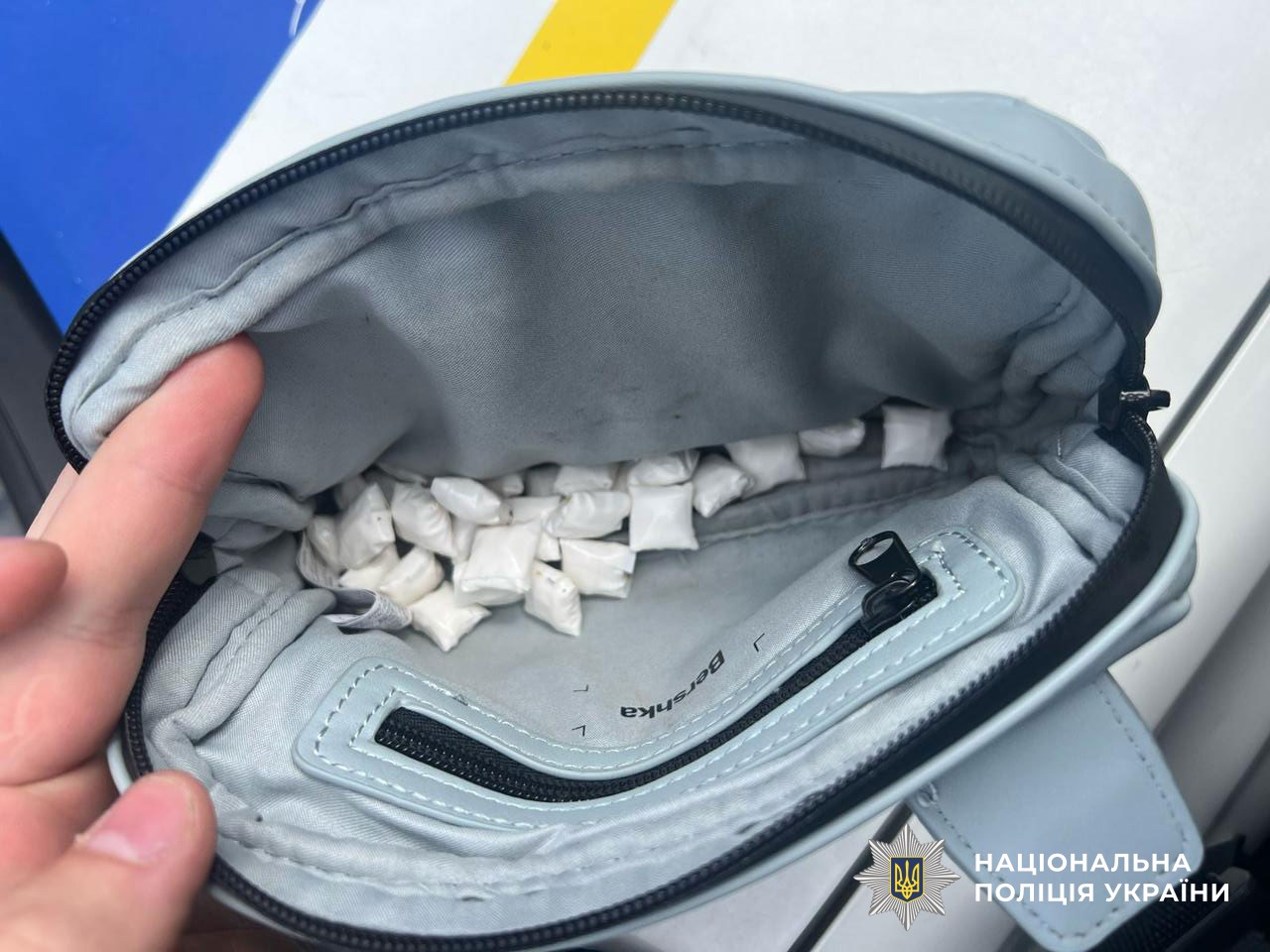 Слідчо-оперативна група поліції, яка прибула на виклик, вилучила в чоловіка кілька десятків згортків з речовиною, схожою на наркотичну.