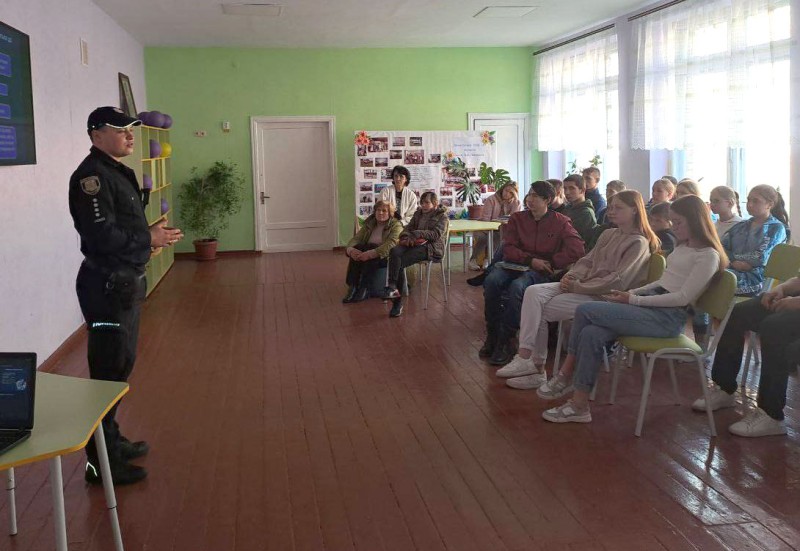 Окремо обговорили тему мінної безпеки. Поліцейський акцентував, що в жодному разі не можна чіпати вибухонебезпечні чи інші підозрілі предмети, та повідомив, куди потрібно звертатися у разі їх виявлення.