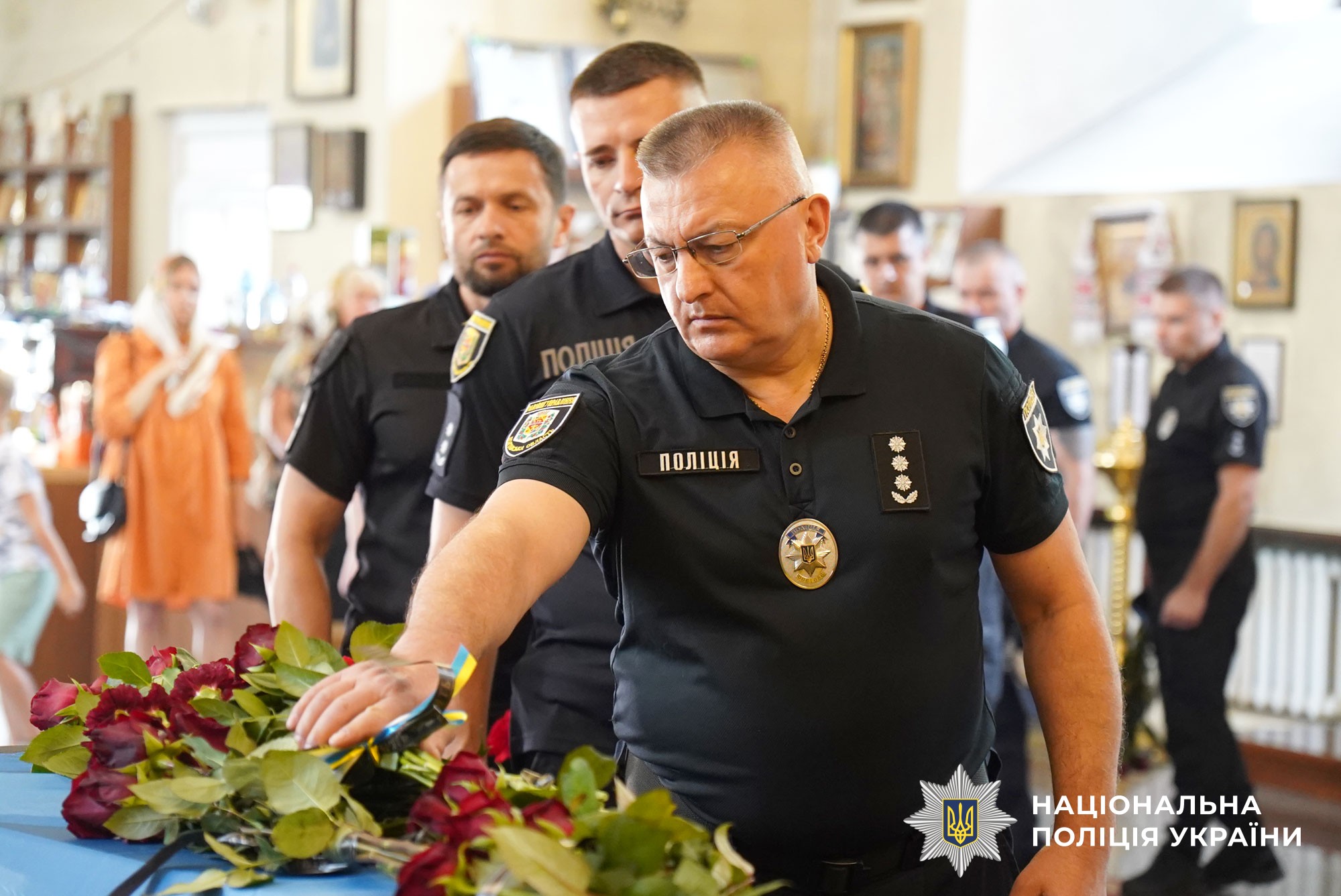 Попрощатися з полеглим прийшли рідні, друзі, колеги та керівництво поліції області. Начальник поліції Полтавщини Євген Рогачов висловив співчуття від імені всього колективу: