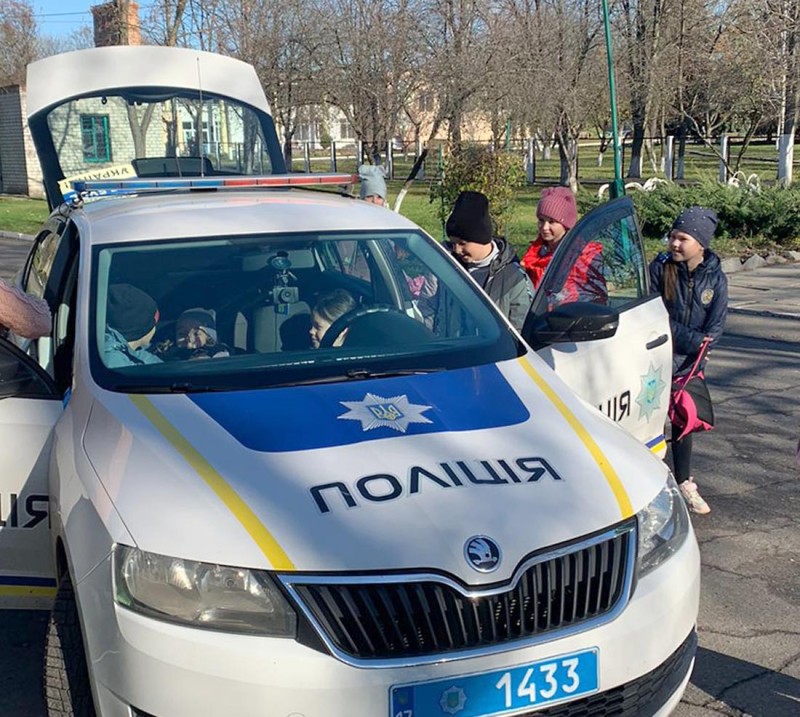 Вихованці змогли ознайомитися з патрульним автомобілем поліцейських та приміряти засоби захисту та спеціальні засоби правоохоронців.