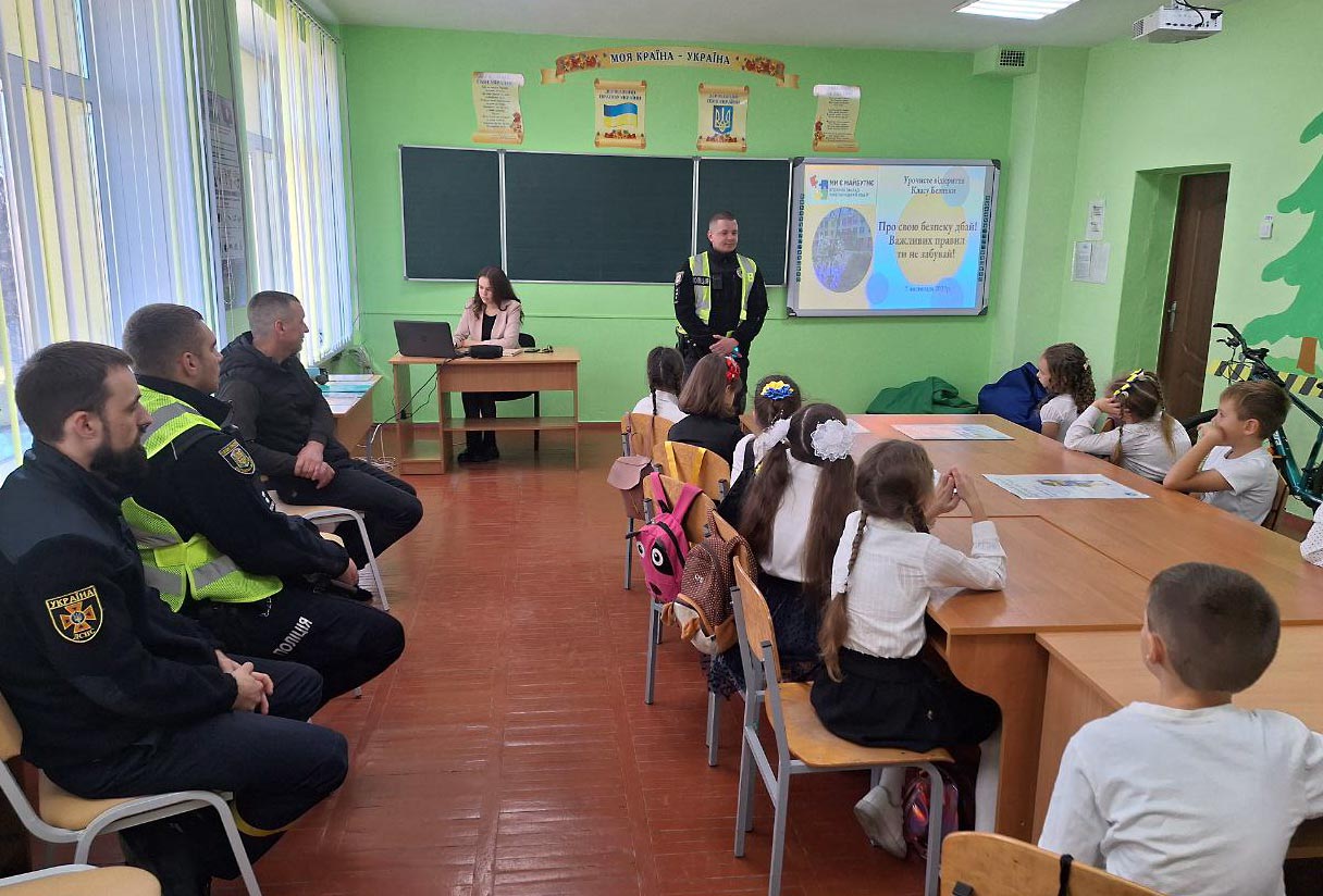 Під час уроку присутні школярі разом з інспекторами групи реагування поліції та інспекторами місцевого підрозділу ДСНС повторили правила мінної безпеки та Правила дорожнього руху. Правоохоронці розповіли школярам алгоритм дій у випадку виникнення надзвичайної ситуації в навчальному закладі та як діяти дітям під час сигналу «Повітряна тривога».
