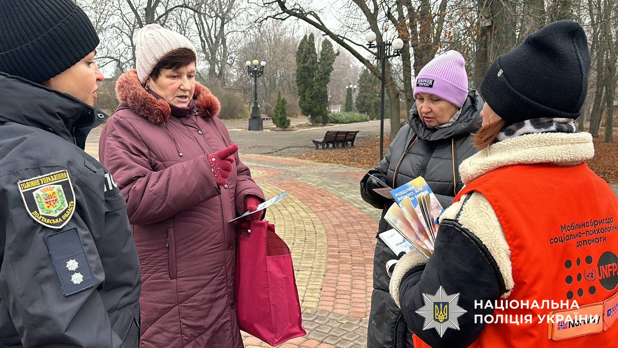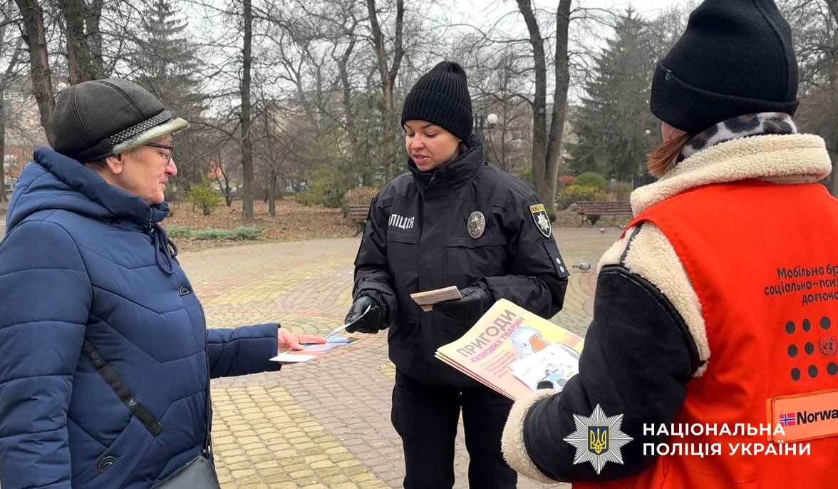 Громадянам роздали інформаційні листівки з корисними контактами, надавали рекомендації як діяти у разі небезпеки та консультували до кого потрібно звертатися за допомогою.