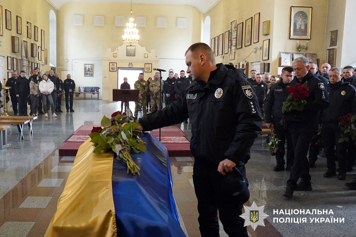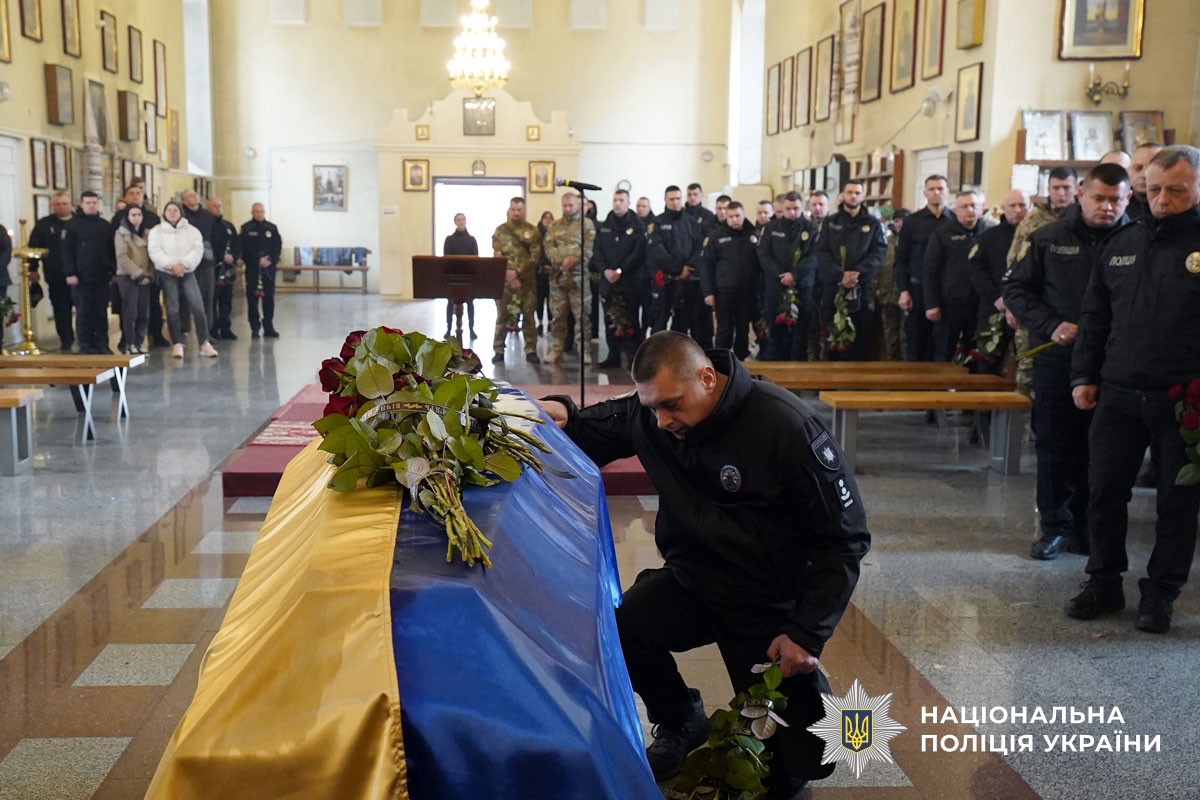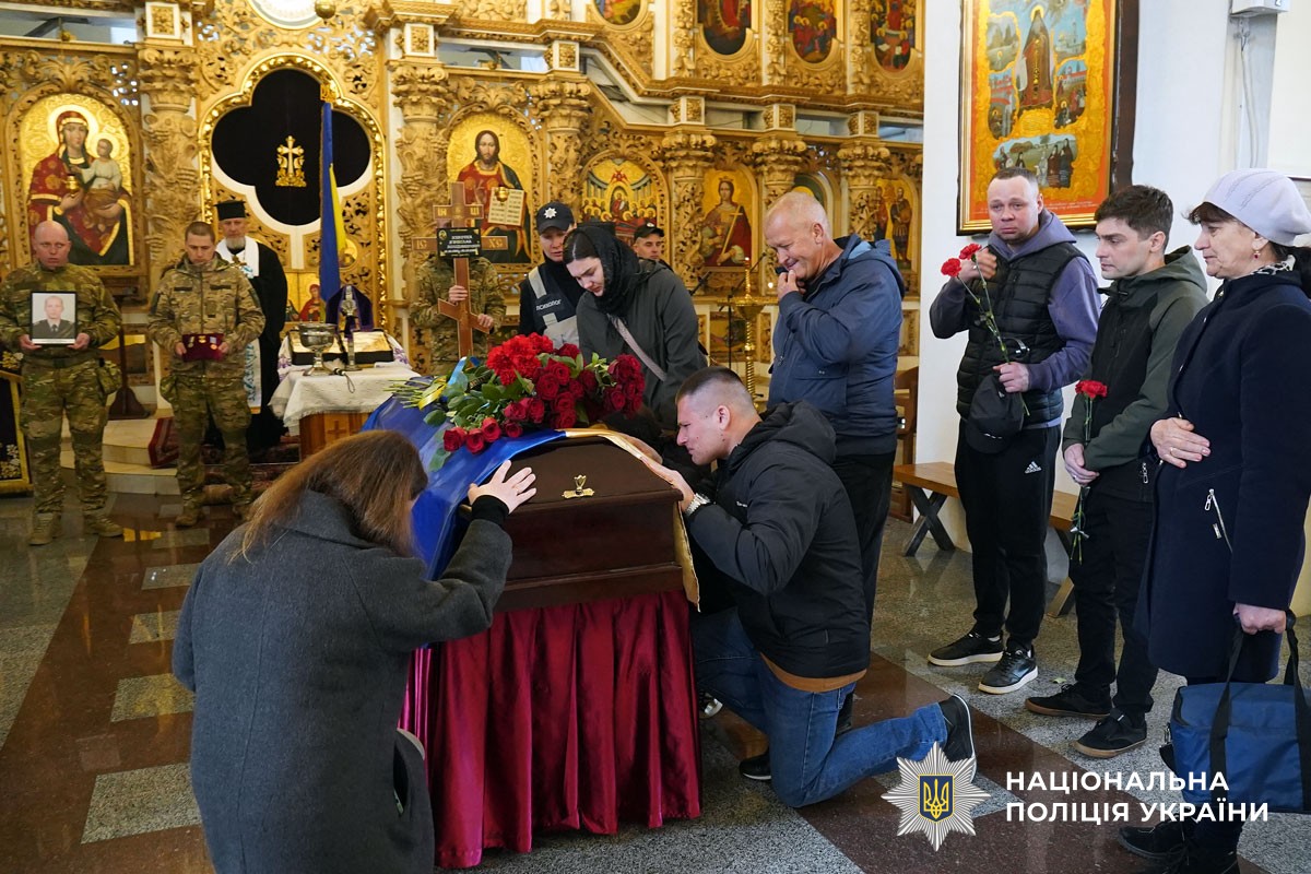 Церемонія прощання відбулася у Свято-Успенському кафедральному соборі Полтави. Рідні, друзі, побратими, колеги, керівництво поліції та мешканці міста, схиливши голови та ставши на коліна, віддали останню шану захиснику.