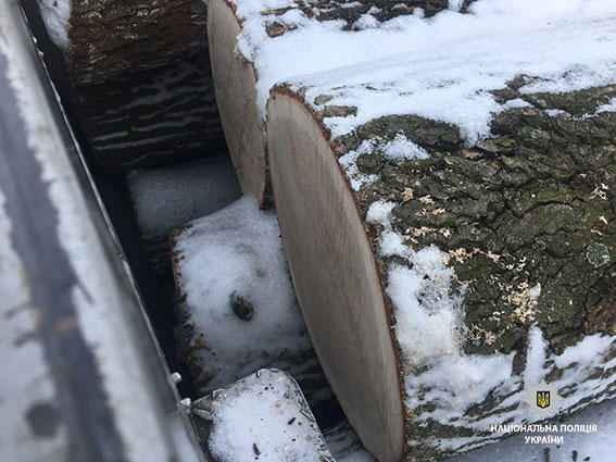 На місці події поліцейські зафіксували факт перевезення вантажівкою 10-ти метрів кубічних свіжоспиляних дерев дубу.