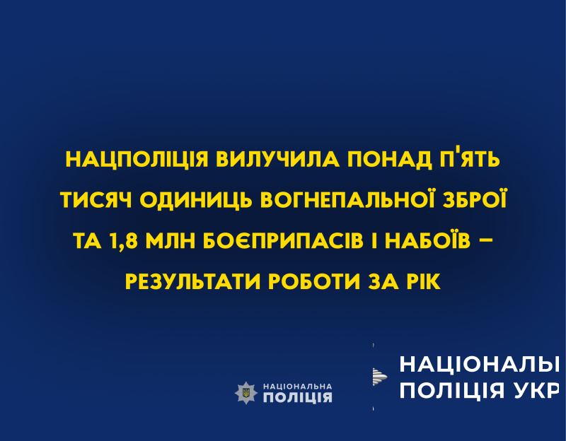 Нацполіція вилучила понад п'ять тисяч одиниць вогнепальної зброї та 1,8 мільйона боєприпасів і набоїв – результати роботи за рік