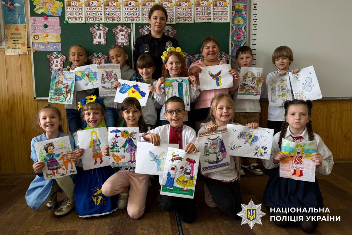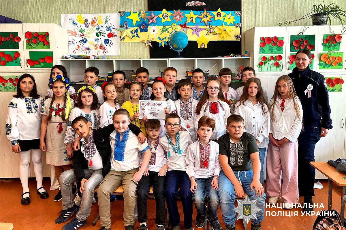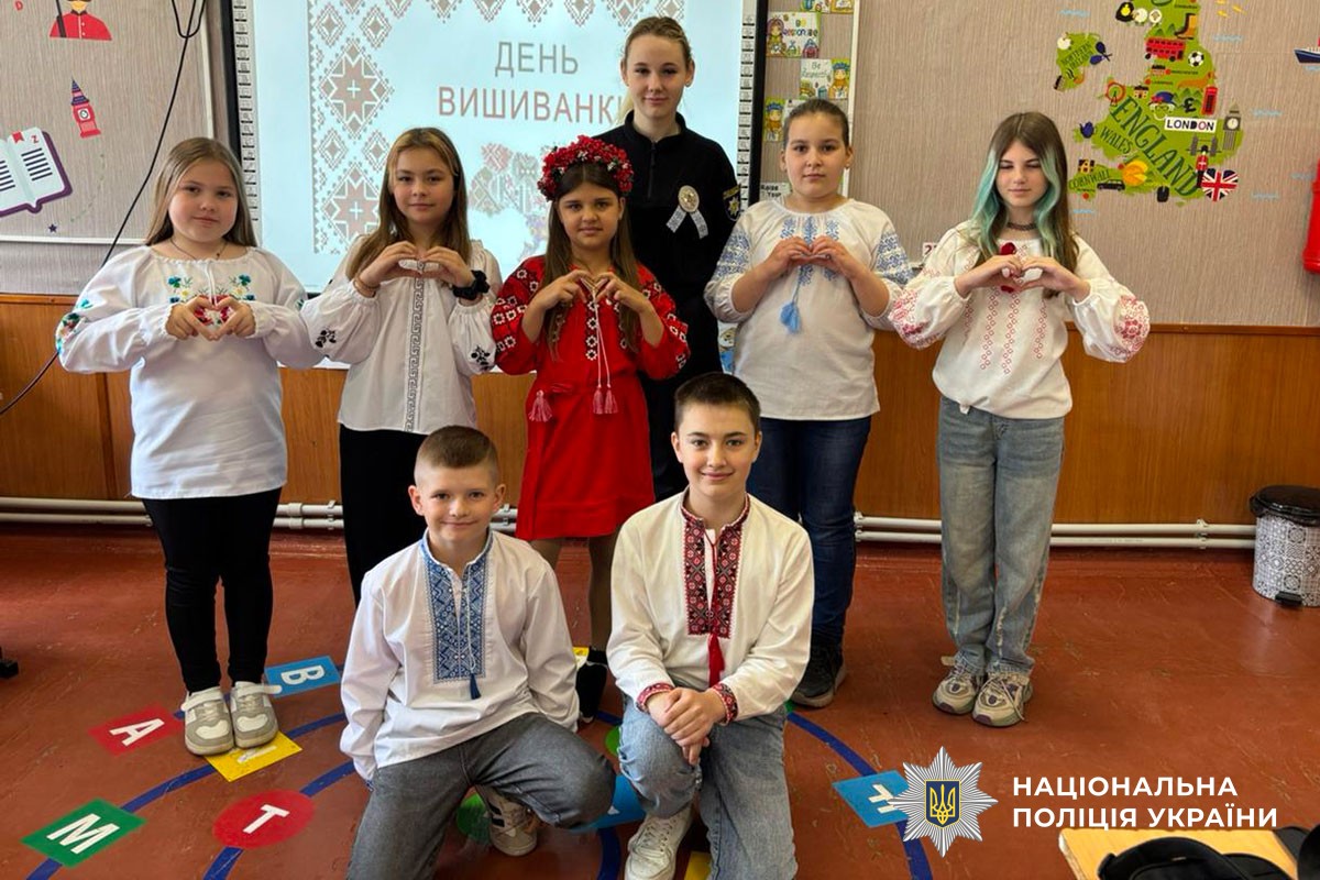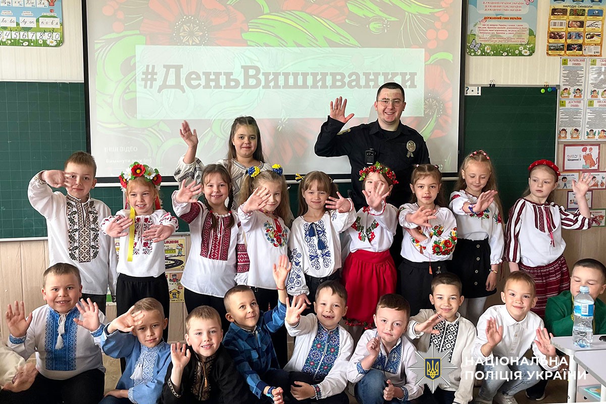 Офіцери Служби освітньої безпеки говорили із дітьми про українську вишиванку – що символізує орнамент та які елементи притаманні для різних регіонів України. Як сорочка, вишита руками предків, стала мовою єдності для мільйонів українців – і в Україні, і за її межами?