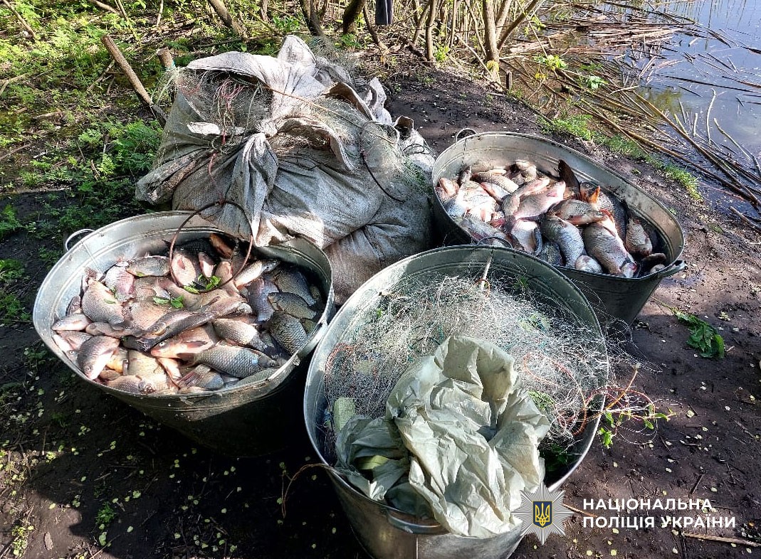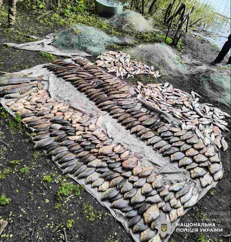 «Під час профілактичних заходів працівники сектору поліцейської діяльності на воді спільно з батальйоном поліції особливого призначення та працівниками Держекоінспекції Центрального округу поблизу берега виявили алюмінієвий човен з навісним двигуном, з якого ймовірно невідомі особи здійснювали незаконний вилов риби за допомогою сіток. Рейдовою групою виявлено на березі 12 сіток загальною довжиною 840 метрів та близько 150 кілограмів свіжовиловленої риби. За попередньою оцінкою фахівців, завдані державі збитки становлять близько двох з половиною мільйонів гривень».