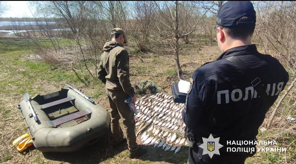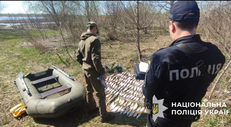 «Під час профілактичного рейду 8-го квітня на Кам'янському водосховищі річки Дніпро працівники сектору поліцейської діяльності на воді виявили чоловіка 1968 року народження, який на гумовому човні за допомогою двох сіток довжиною 110 метрів здійснив вилов риби загальною вагою близько 20 кілограм. За попередньою оцінкою фахівців, завдані державі збитки становлять 268 тисяч гривень».
