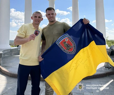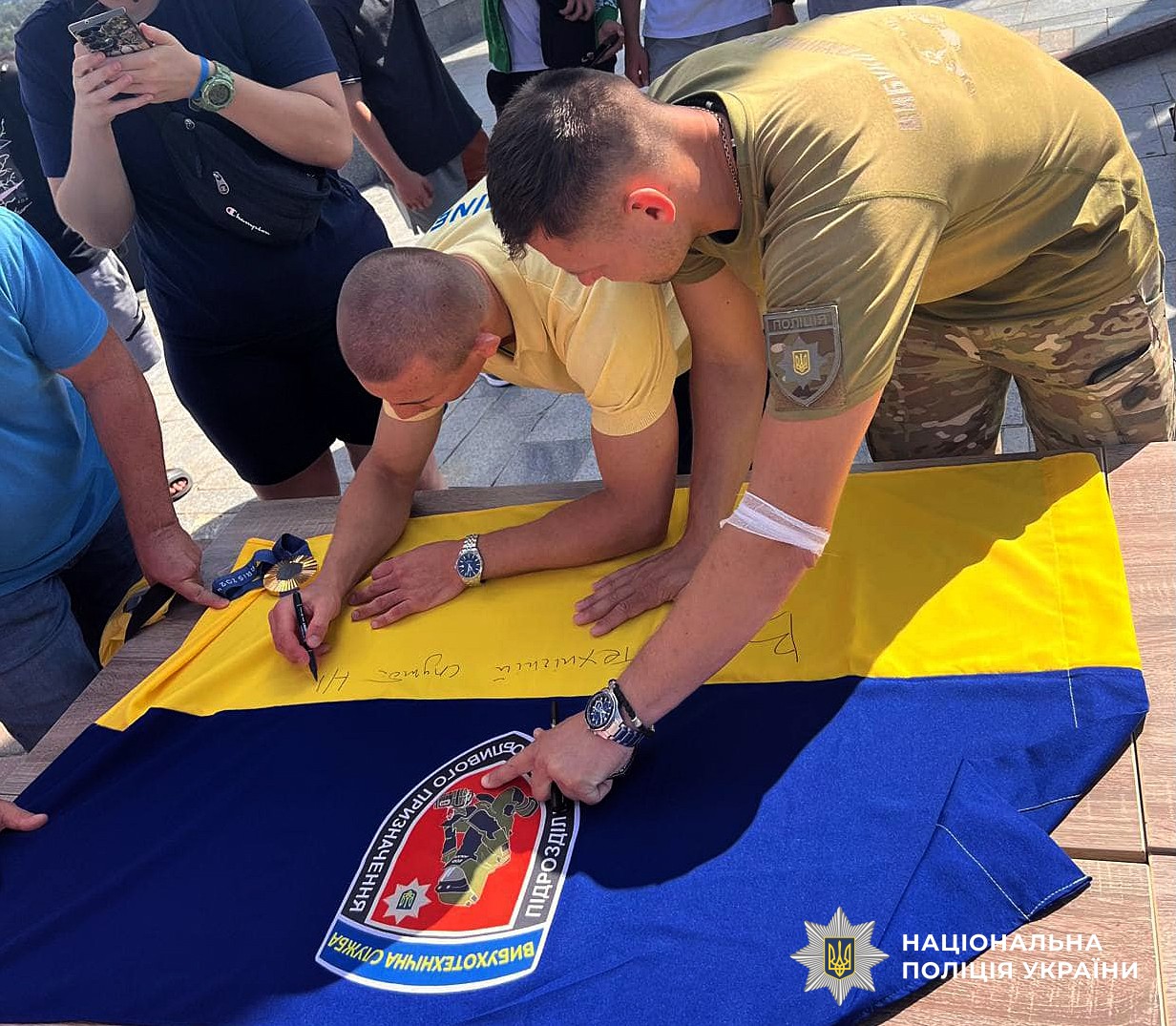 Олімпійський чемпіон Олександр Хижняк підписав Прапор України для поліцейських Полтавщини