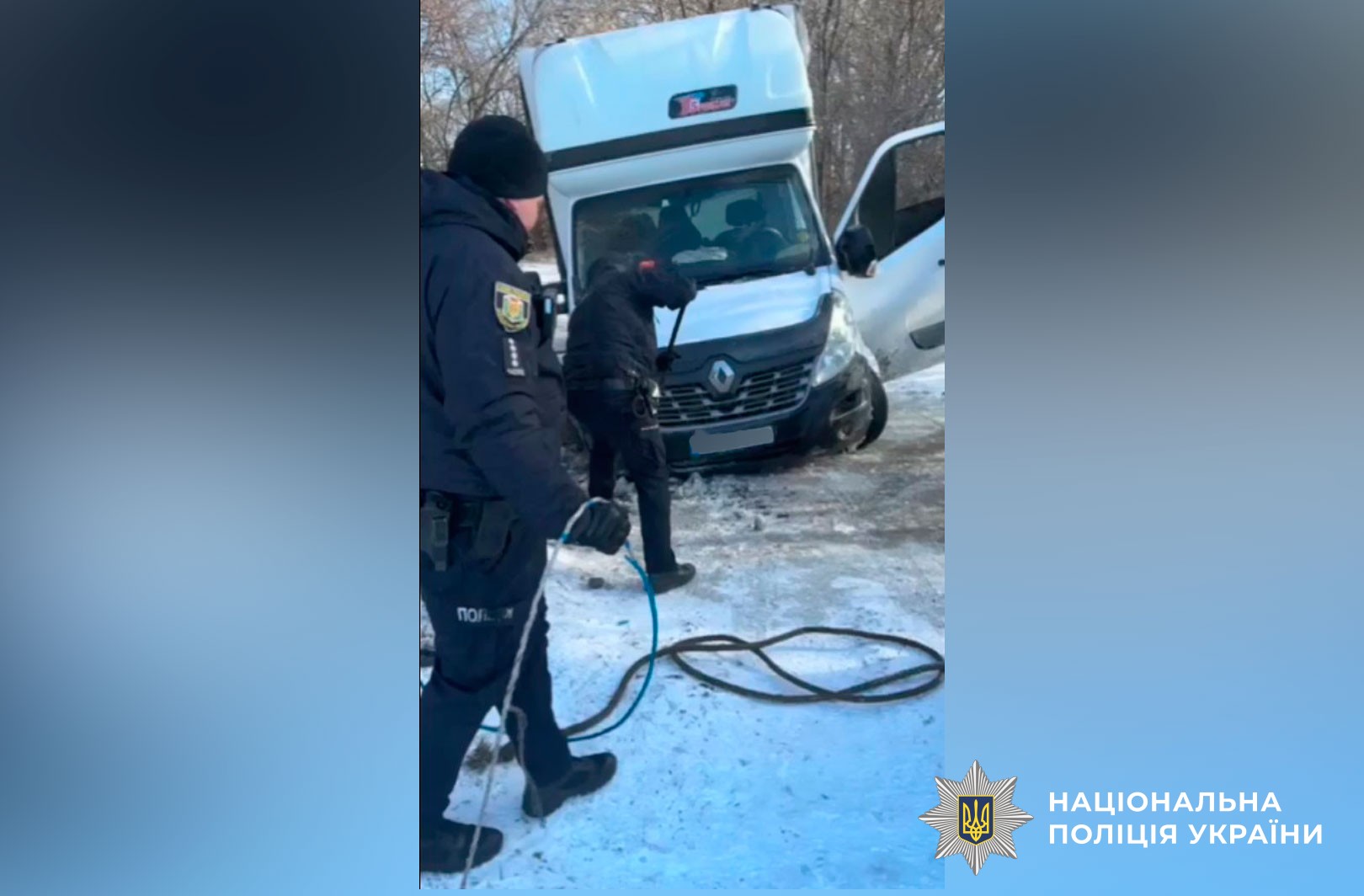 Нещодавно на лінію 112 надійшло повідомлення від водія вантажного фургона Renault, який опинився у складній ситуації на трасі в межах Мачухівської громади. Під час розвороту колесо автомобіля застрягло в глибокій колії. Через сильний мороз транспортний засіб простояв на узбіччі близько півтори доби й не міг самостійно продовжити рух.