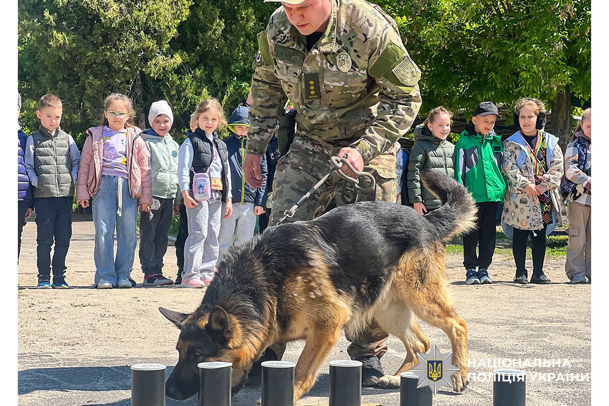 Особливе враження на дітей справили німецька вівчарка Карат, натренований на пошук вибухонебезпечних предметів, та бельгійська вівчарка Джекпот, яка допомагає у пошуку зниклих людей.