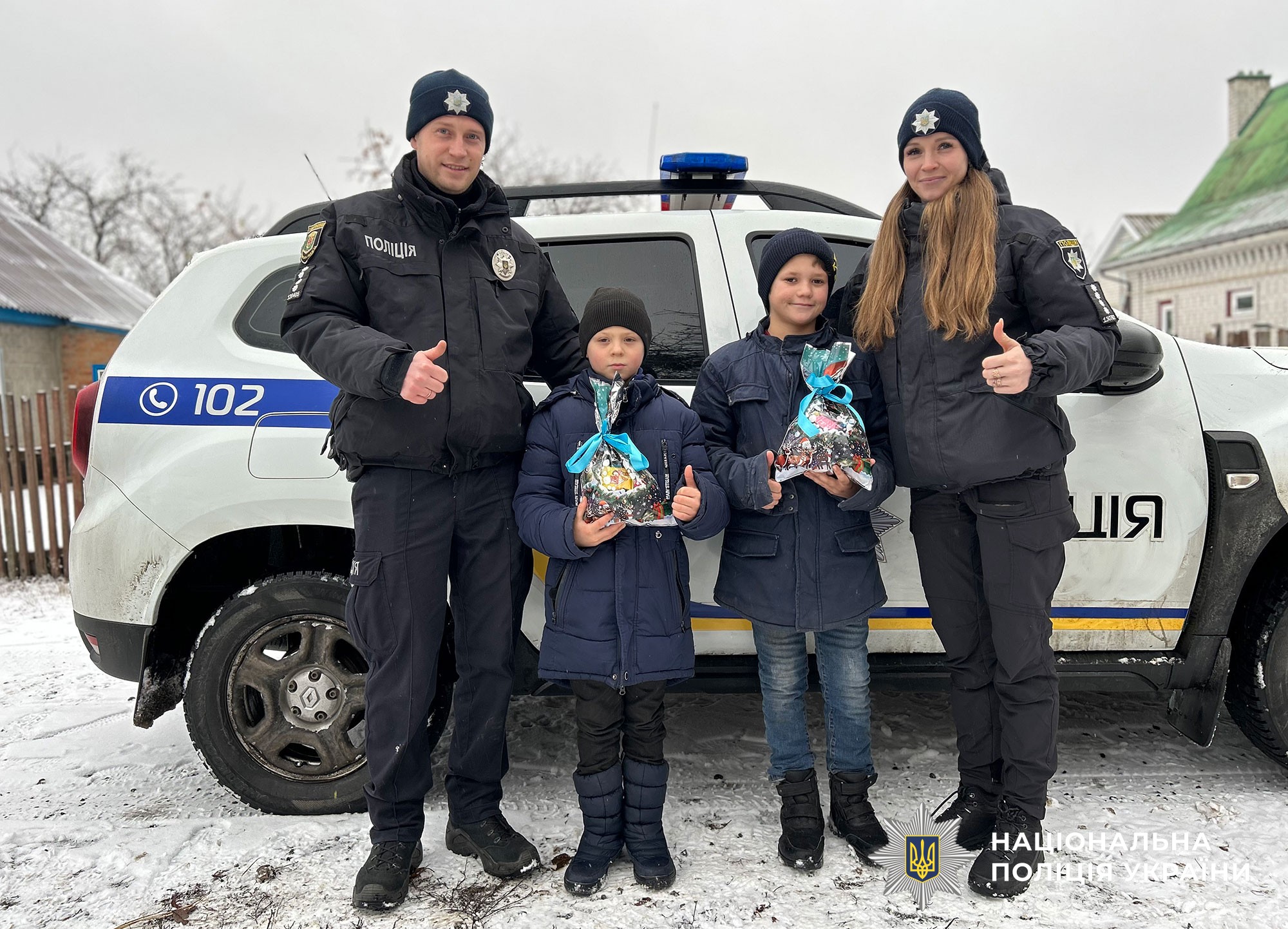Поліцейські Миргородського району завітали до родин Ромоданівської громади, які опинилися в складних життєвих обставинах, зі святковими подарунками.