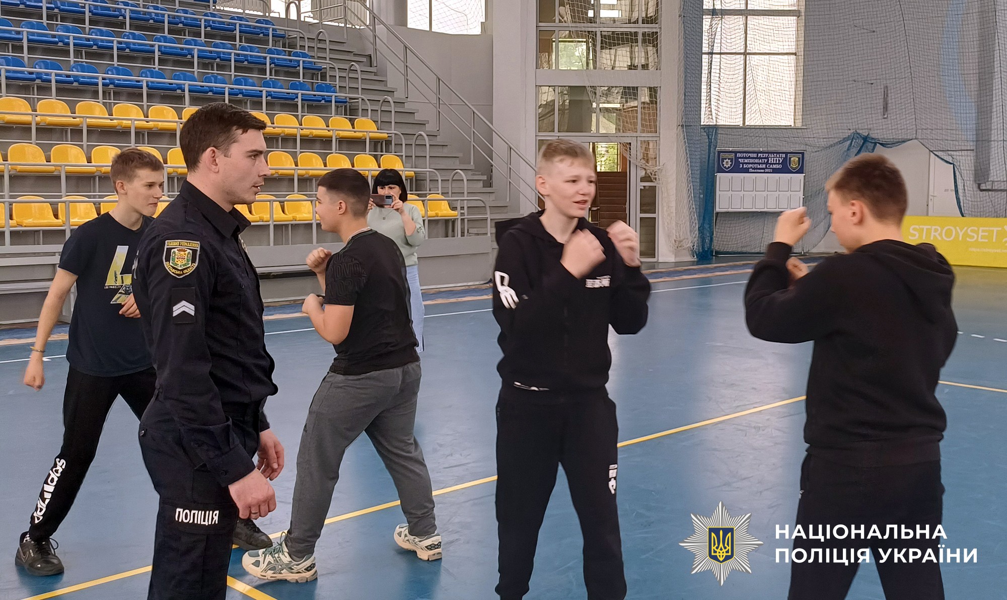 Працівники відділу професійного навчання поліції Полтавщини навчали старшокласників Андріївського ліцею Полтавської обласної ради, як протидіяти фізичному насильству шляхом вивчення прийомів самозахисту. Ліцеїсти опанували навички самооборони в разі нападу грабіжників, прийоми звільнення від захвату нападника та інше.