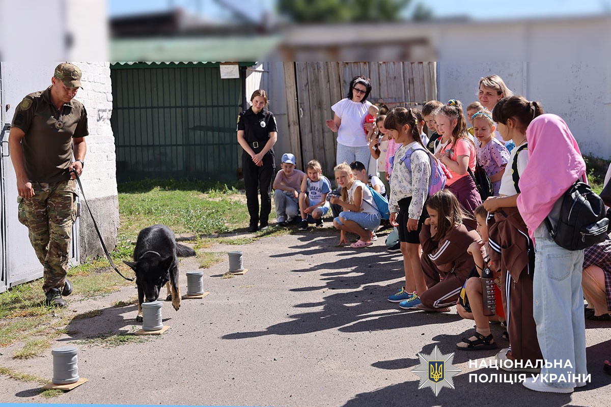 Діти познайомилися з кінологом Валентином Дерновим та його службовим собакою на ім’я Вальтер. Поліцейський розповів про специфіку своєї роботи та роль службових собак у забезпеченні правопорядку, пошуку зниклих людей, виявленні вибухонебезпечних і наркотичних речовин, наданні допомоги людям під час надзвичайних ситуацій та проведення сеансів каністерапії для захисників і захисниць, які перебувають на реабілітації після поранень.