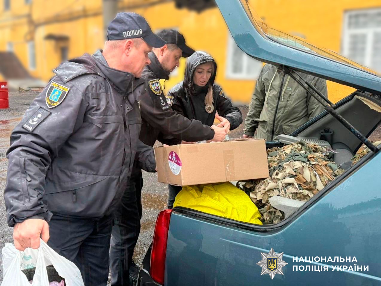 Зібрану допомогу передали поліцейським Сумщини, які доставлять її колегам на передову.
